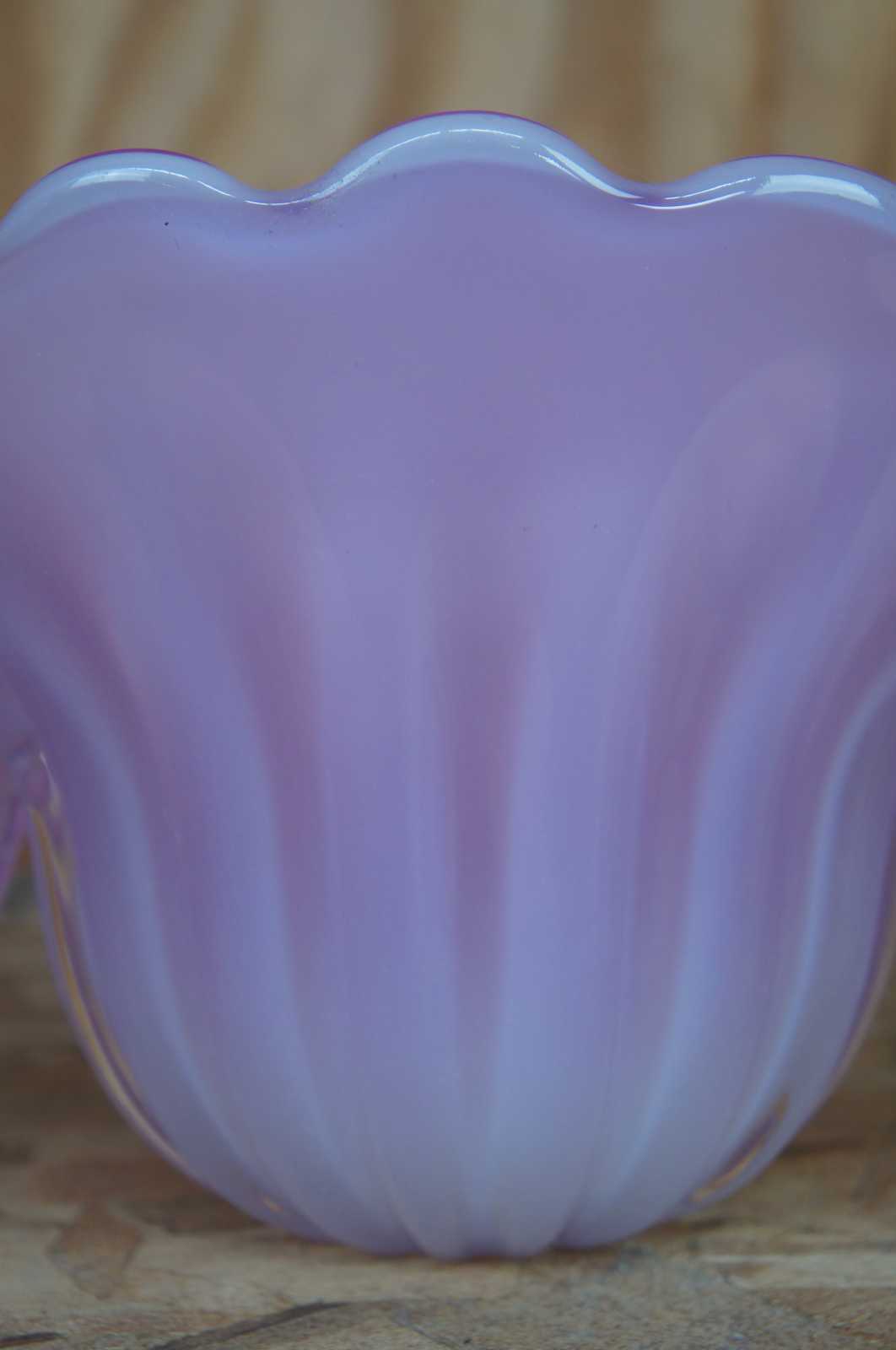 Vintage mid century pink and white Murano glass scallop shell vase, attributed to Archimede Seguso. Archimede Seguso 1909–1999 During his long life Archimede Seguso worked in many of Murano’s most important glasshouses, but he would ultimately become famous for establishing and operating his own. At a young age Seguso became an apprentice at the Vetreria Artistica Barovier where his father was a partner.