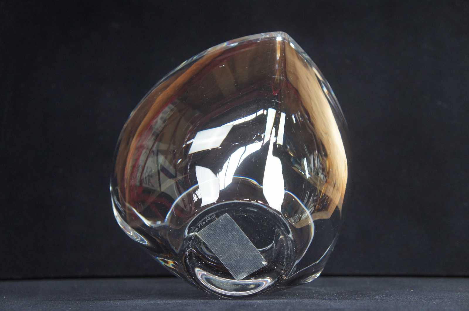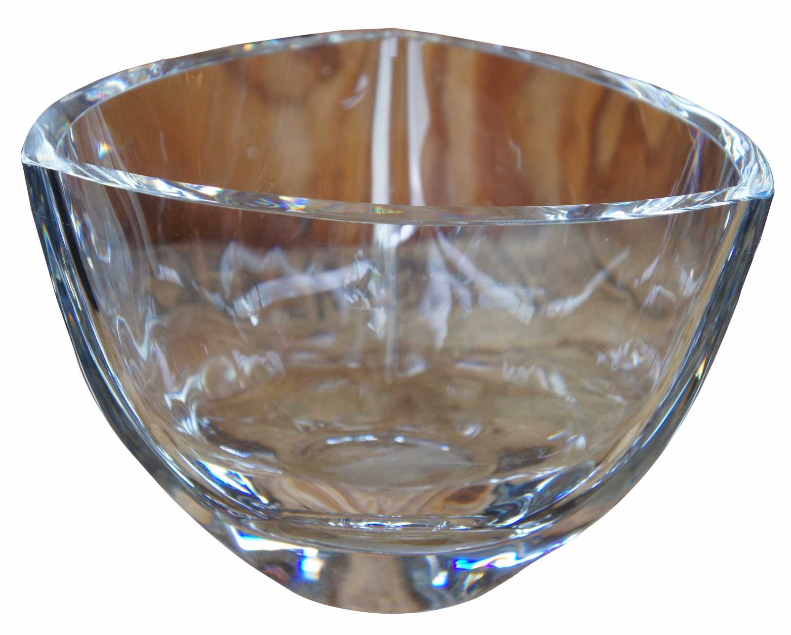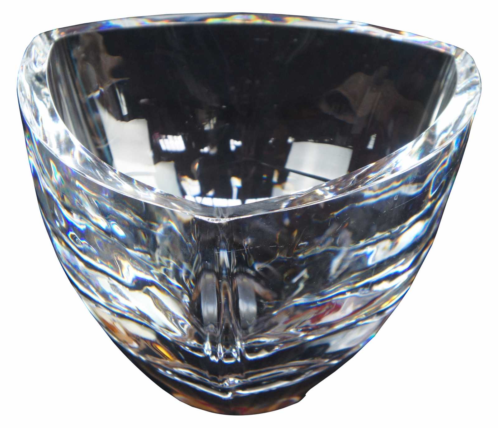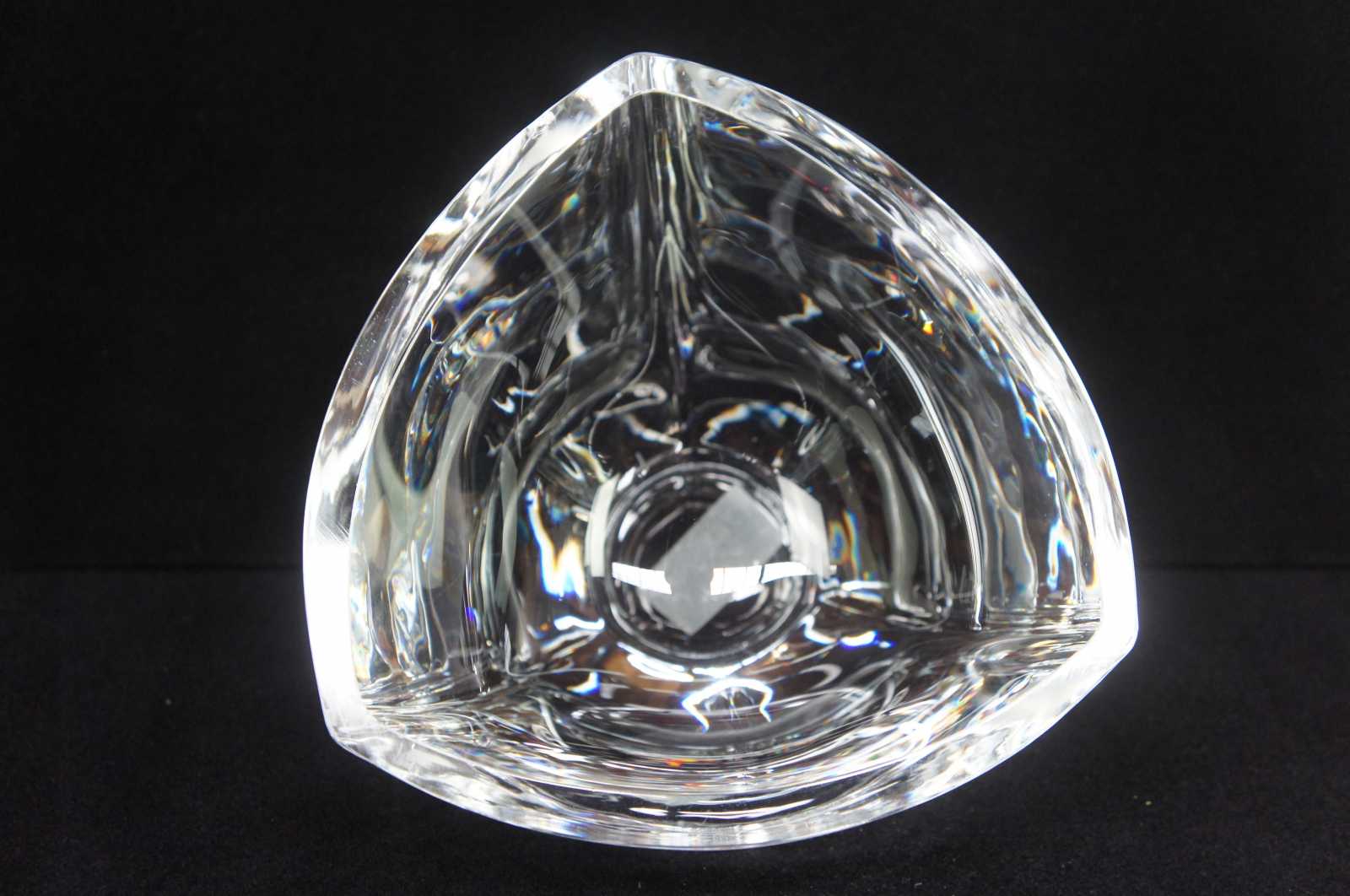 Vintage triangular crystal serving bowl signed and numbered by Klaus-Goran Tinback for Kosta Boda.