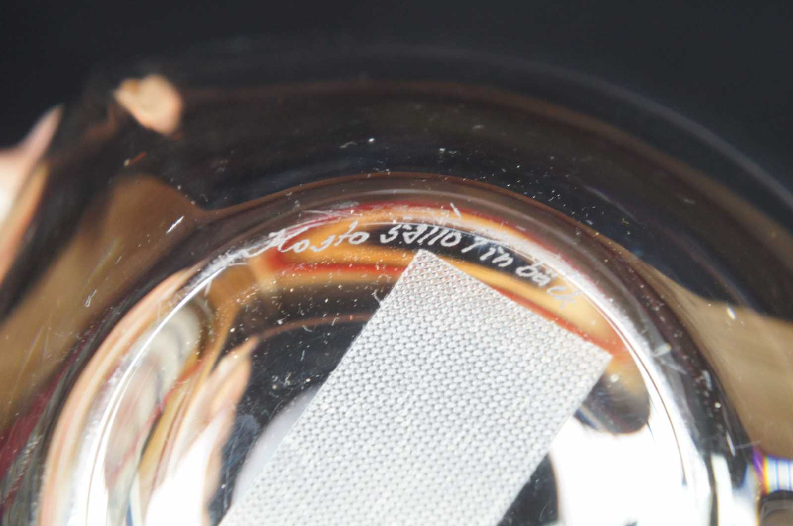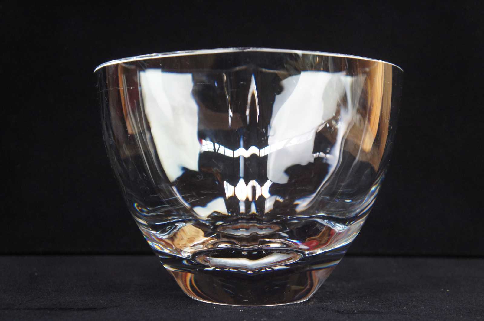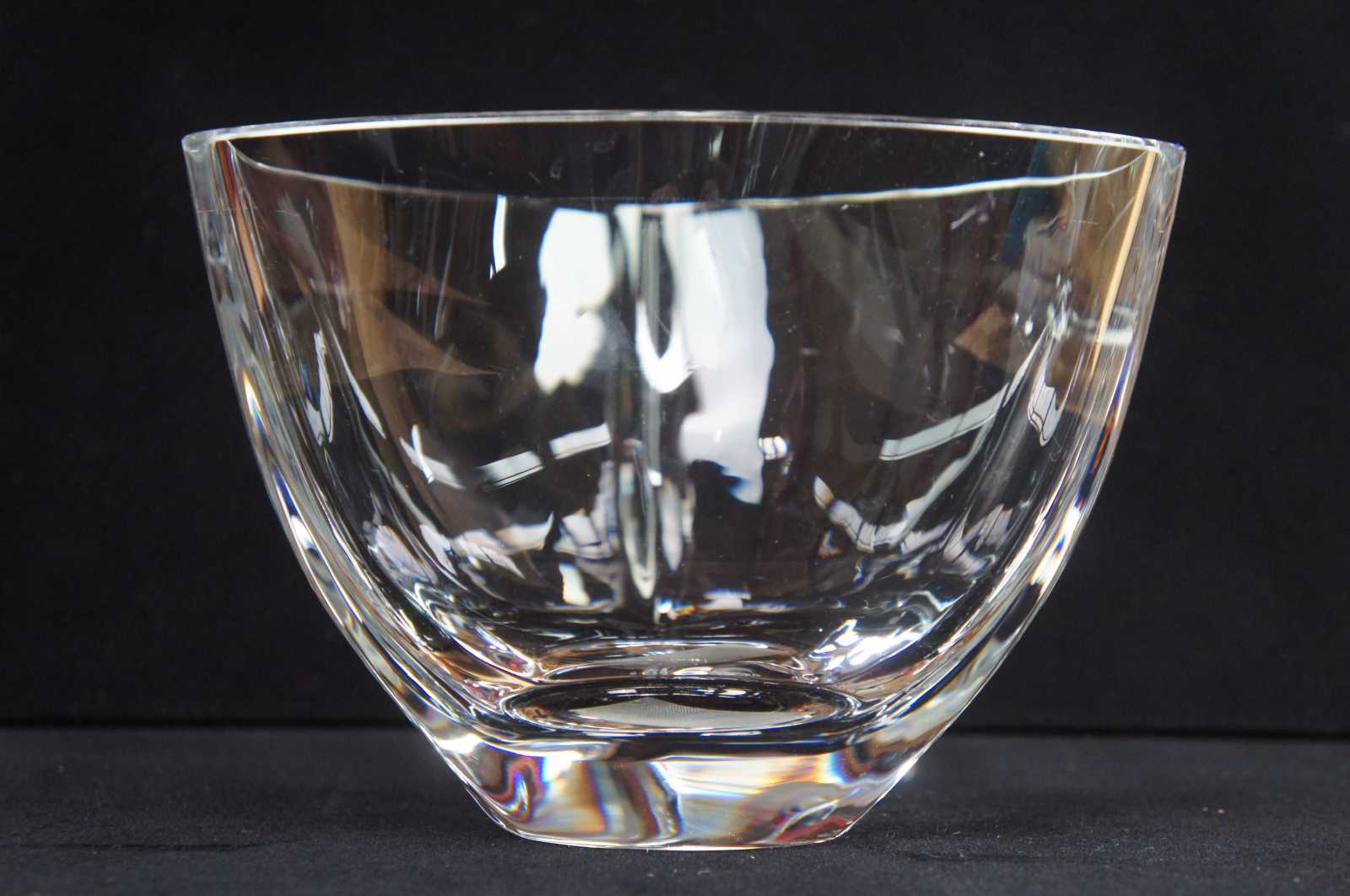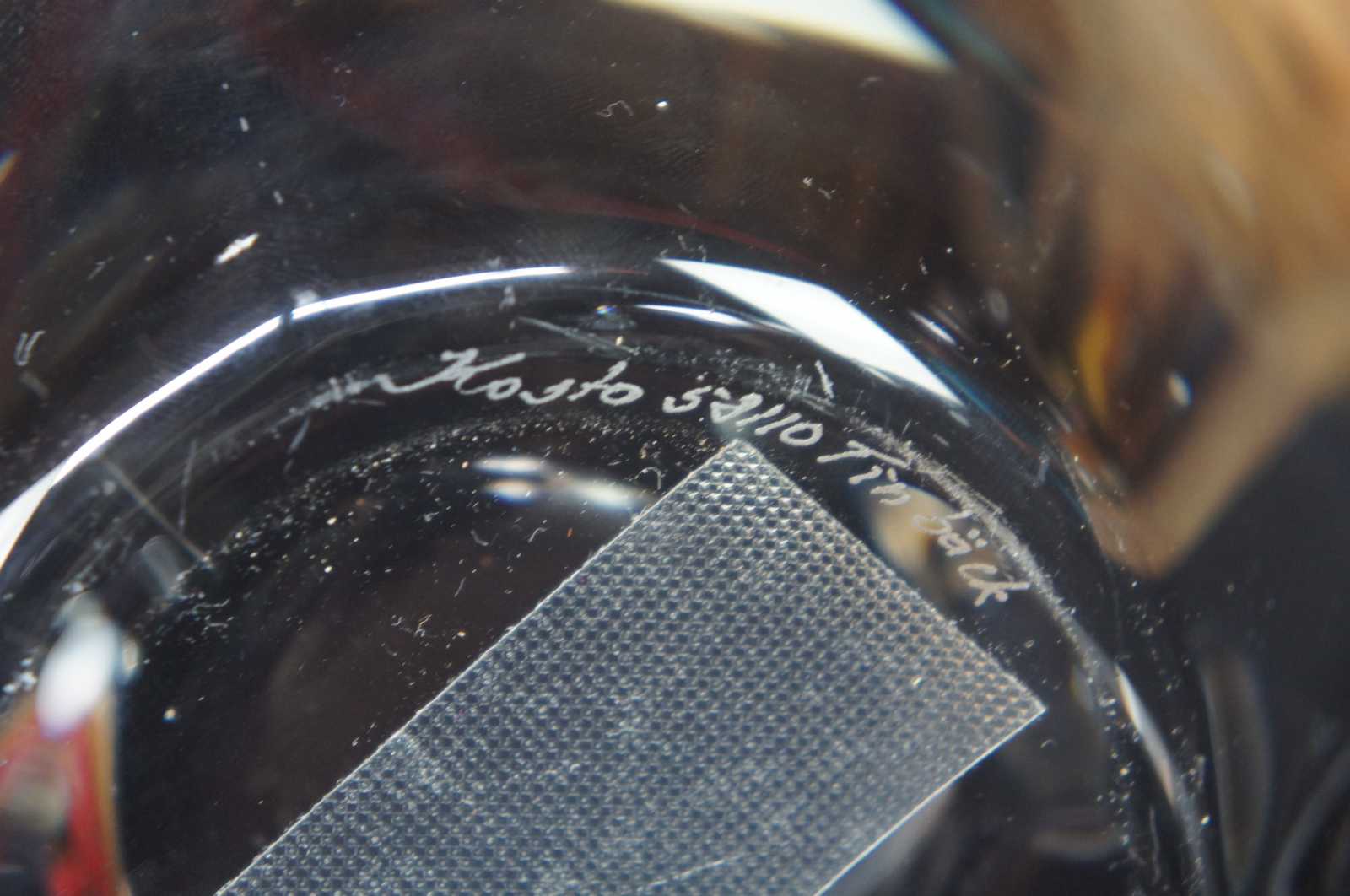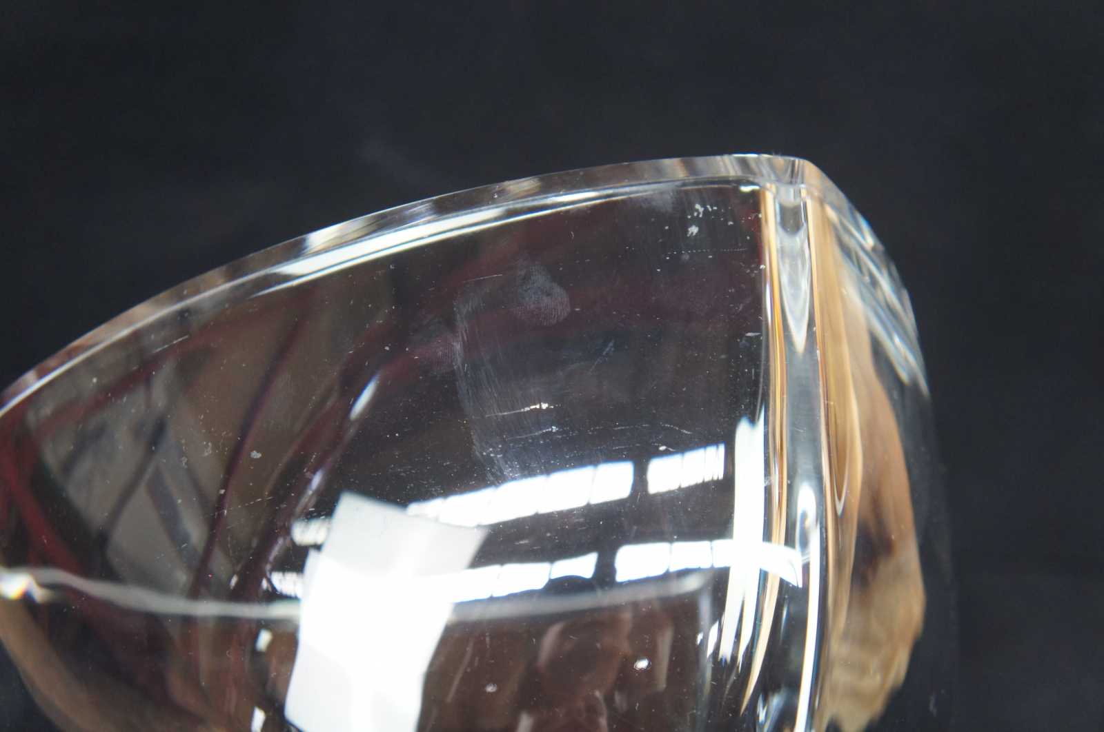 Vintage triangular crystal serving bowl signed and numbered by Klaus-Goran Tinback for Kosta Boda.