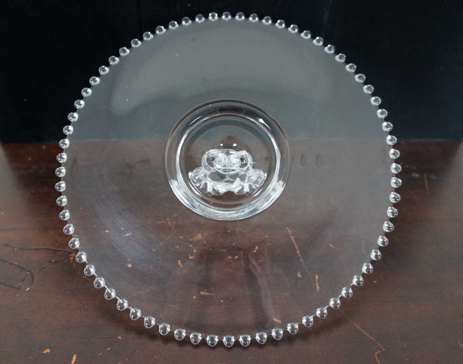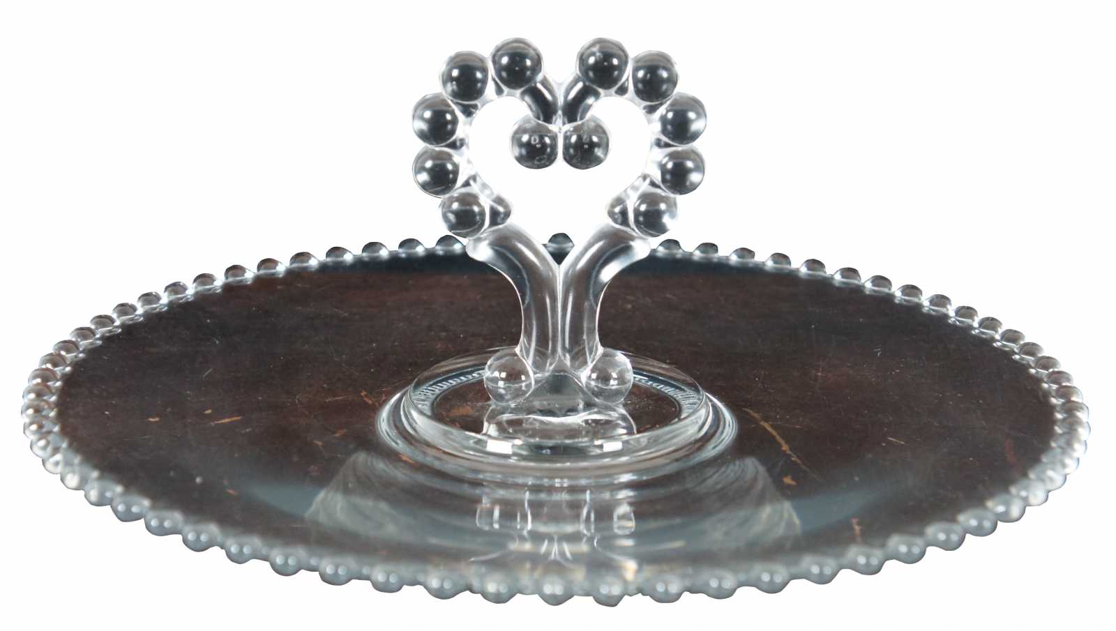Vintage mid century Imperial candlewick glass serving tray with bubble edge and heart shaped handle.