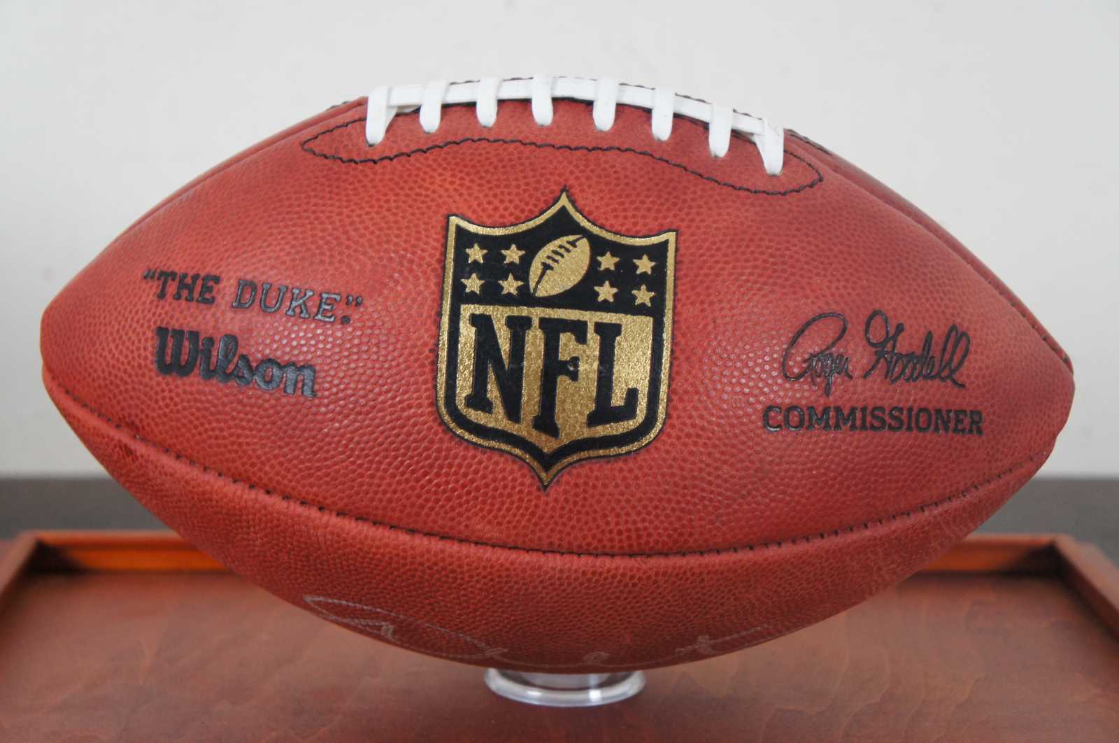 Collectible NFL football in shadowbox display autographed by Andy Dalton; includes COA. “Andrew Gregory Dalton (born October 29, 1987) is an American football quarterback for the Chicago Bears of the National Football League (NFL). He played college football at Texas Christian University (TCU), and in his final college game led TCU to a win in the 2011 Rose Bowl. He is the all-time leader in wins at Texas Christian University.[1]