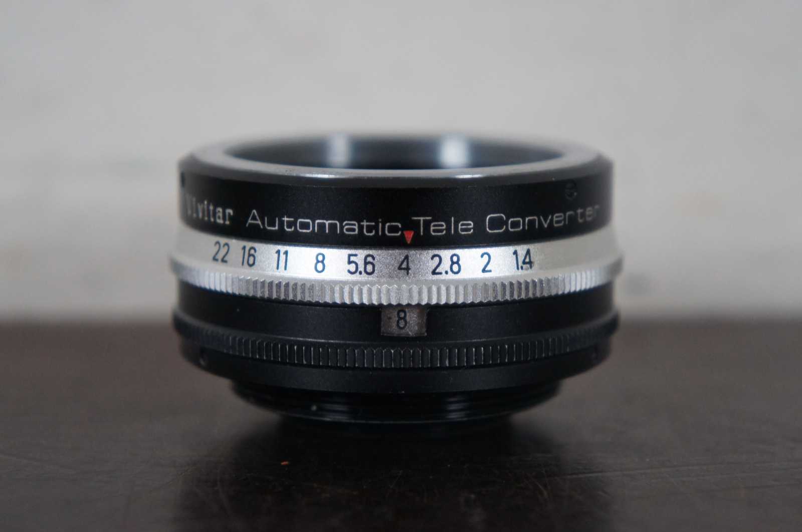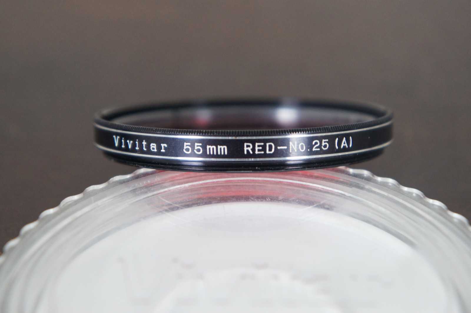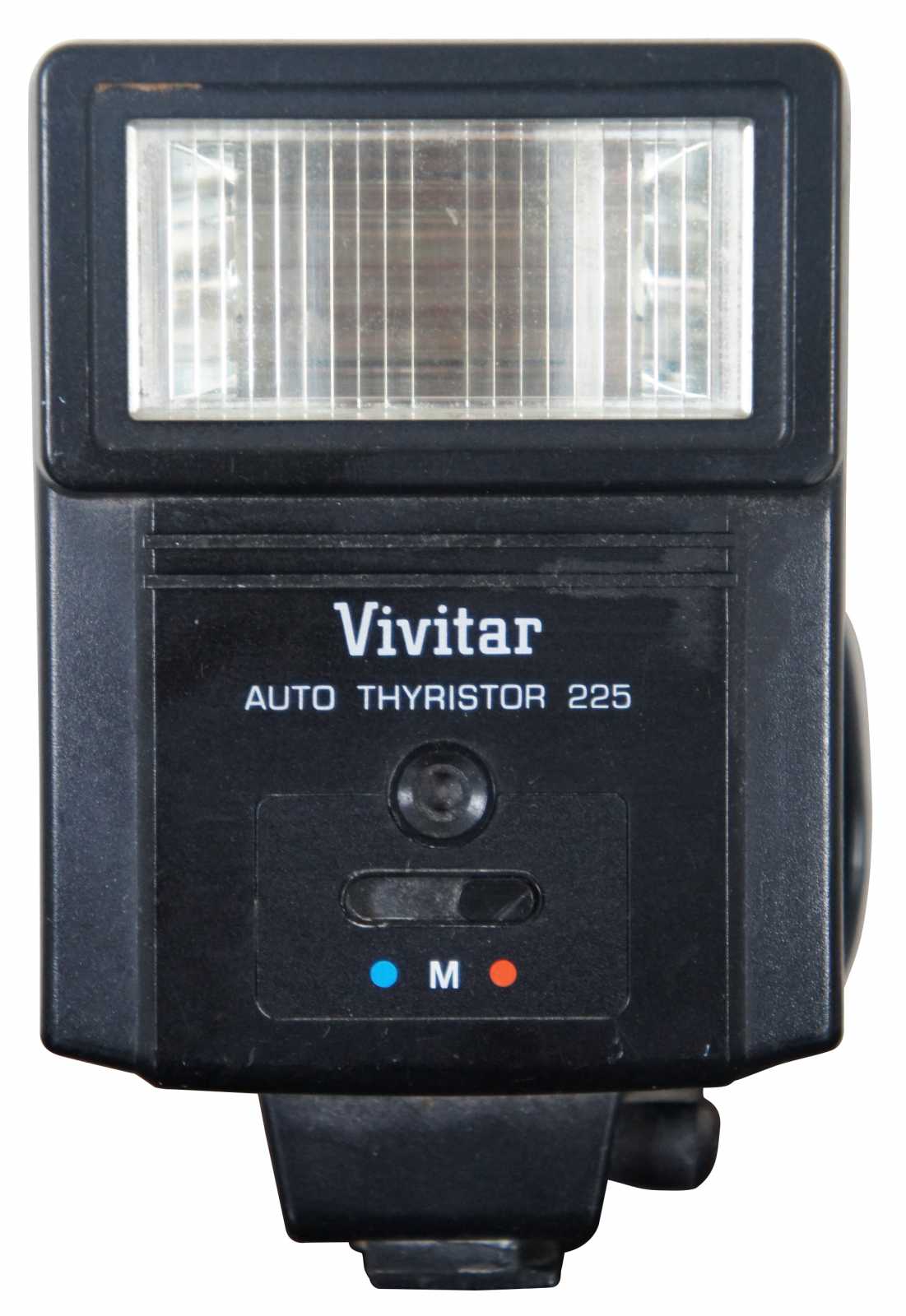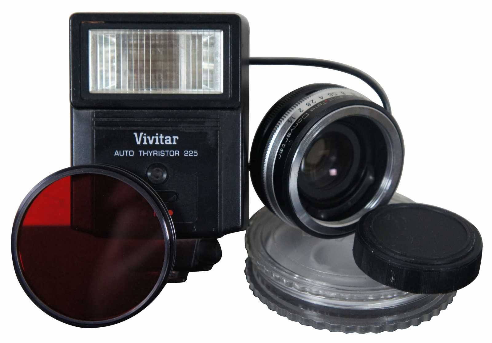 Three Vivitar camera accessories: Auto Thyristor 225 flash, 55mm Red – No 25 (A) lens filter, and Automatic Tele Converter 2X-1.