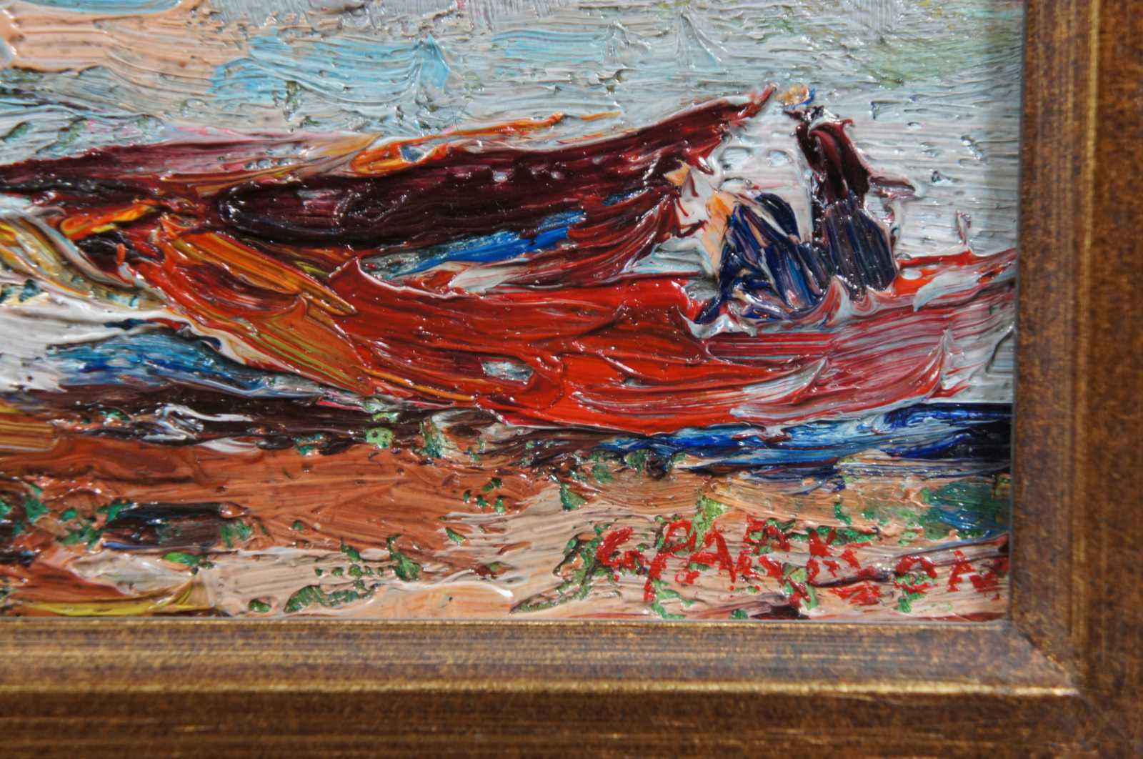 Vintage C. Parkson Original Oil Painting on Canvas Impressionist Landscape Boats