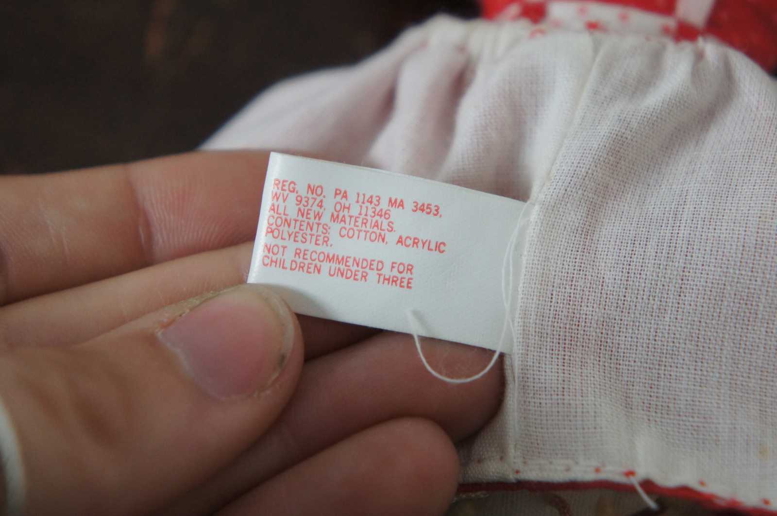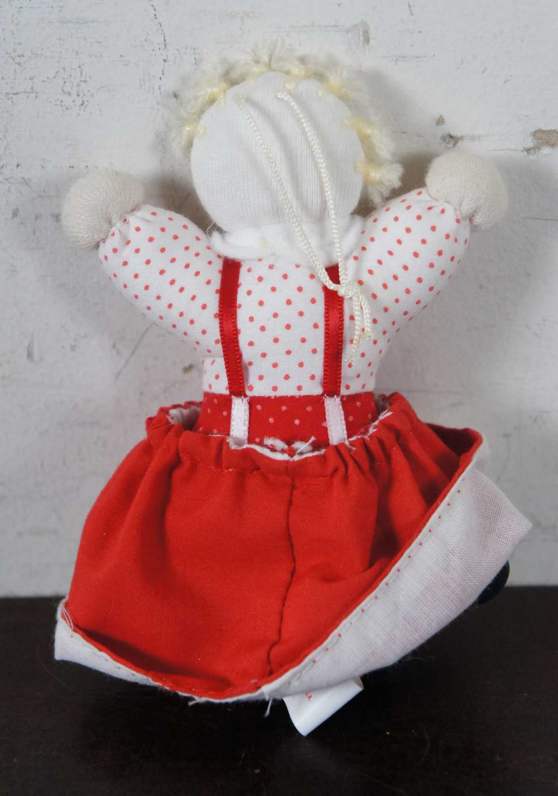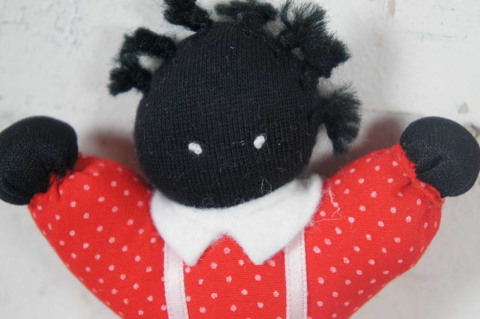 Modern construction, made in Taiwan black and white topsy turvy doll. Topsy-turvy dolls (two half dolls joined at the waist) date to the mid 1800’s. The topsy turvy doll originally featured the figure of a black girl and white girl on the opposite side. In 1852, the first known version of the doll emerged as the Topsy and Eva doll, which was based on the characters Topsy and Eva in Harriet Beecher Stowe’s Uncle Tom’s Cabin. Many contemporary topsy-turvy dolls feature fairy tale characters instead, for example Red Riding and the Wolf in Grandma’s clothing or Cinderella transforming from maid to princess.