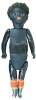 Antique 19th century black doll with full bisque body, jointed limbs and blue and red painted boots.