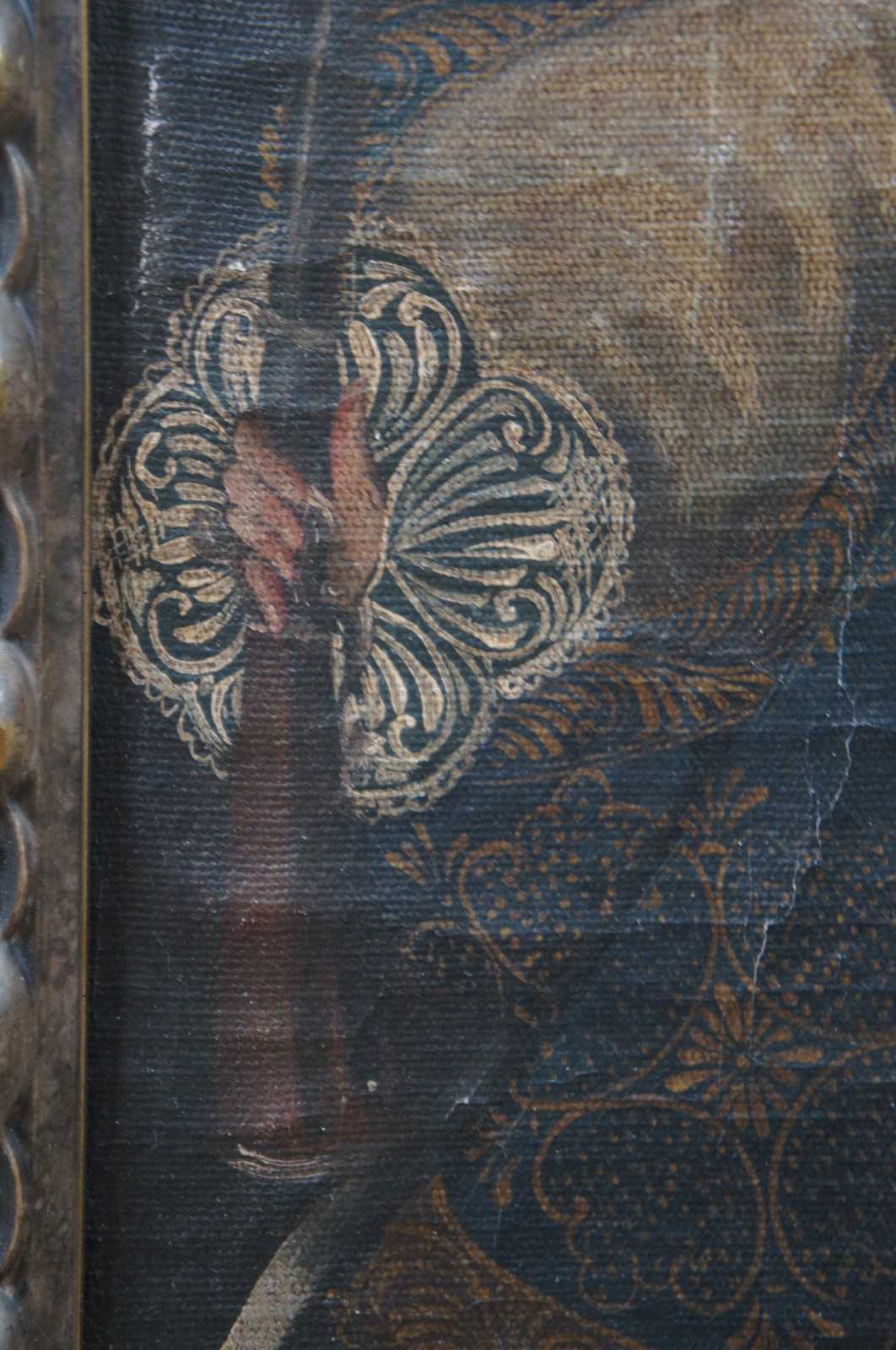 Antique Spanish Colonial or Peruvian portrait oil painting of Angel Arcabucero on canvas.