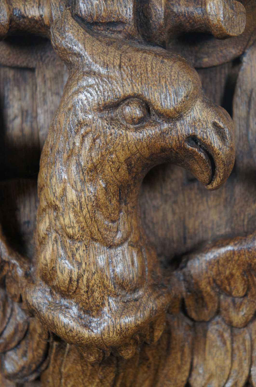 Antique carved oak plaque in beveled frame of an eagle in high relief.