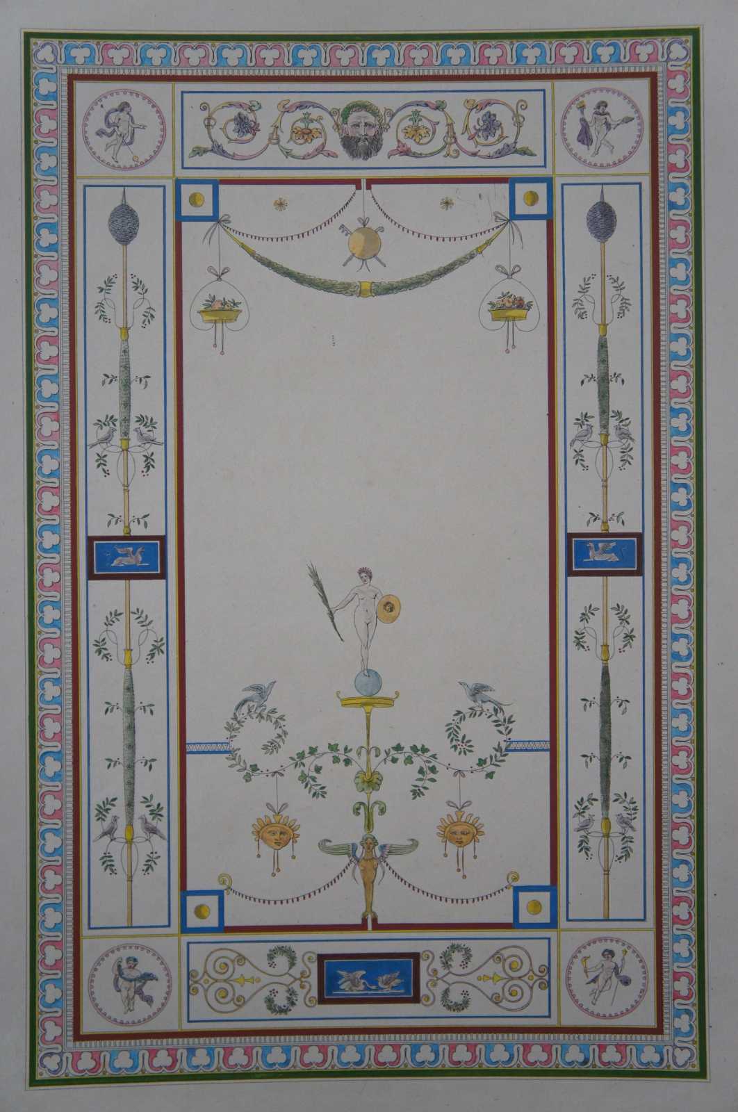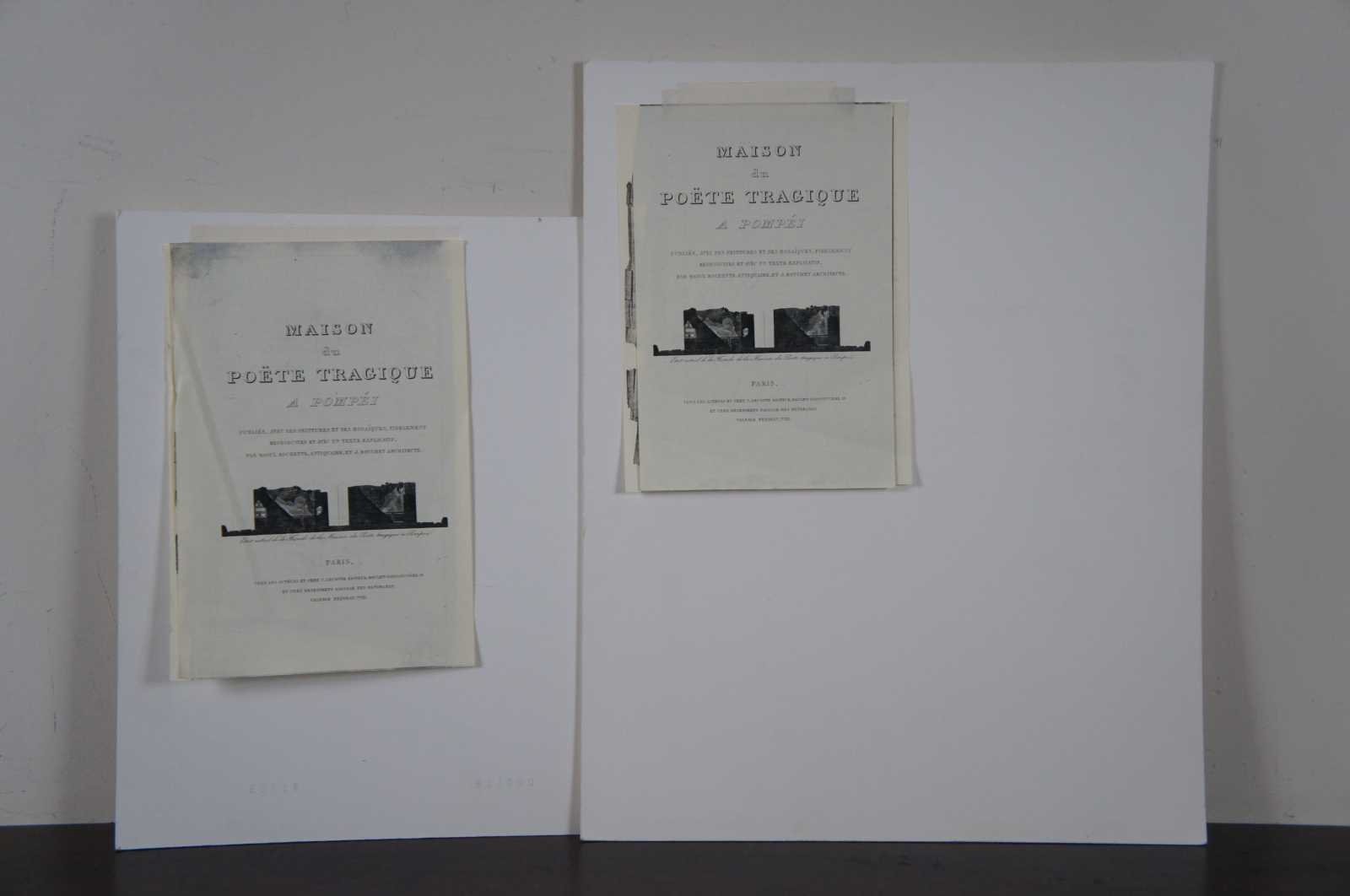 Pair of matted antique hand colored engravings from Maison du Poete Tragique a Pompei by Raoul Rochette & Jules Frédéric Bouchet. “Maison du Poete Tragique a Pompei aka The House of the Tragic Poet is a Roman house in Pompeii, Italy dating to the 2nd century BCE. The house is famous for its elaborate mosaic floors and frescoes depicting scenes from Greek mythology.” “Desire RAOUL ROCHETTE (1790-1854), French archaeologist, was born on the 9th of March 1790 at St Amand in the department of Cher, and received his education at Bourges. He was made professor of history in the College de Louis-leGrand at Paris (1813) and in the Sorbonne (1817). His critique de l'etablissement des colonies grecques (4 vols., 1815) is now out of date. He was superintendent of antiquities in the Bibliotheque at Paris (1819-48), and professor of archaeology at the Bibliotheque (from 1826), a result of which. may be seen in his Cours d'archeologie (1828). In 1829 appeared. his Monuments inedits, a work of great value at the time. Still valuable are his Peintures inddites (1836) and his Peintures de Pompdi (1844). He contributed to the Annali of the Roman Institute, the Journal des savants and the Acaddmie des inscriptions. At his death on the 3rd of July 1854 Raoul Rochette was perpetual secretary of the Academy of Fine Arts and a corresponding member of most of the learned societies in Europe.” “Jules-Frédéric Bouchet was an architect and engraver who began his career as a
