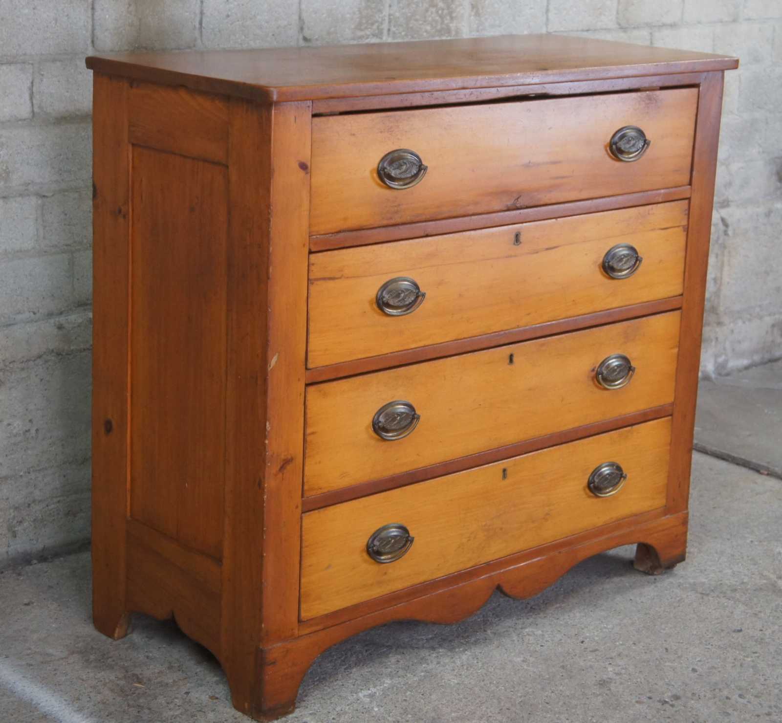 Late 19th century American pine dresser. Rectangular form with four drawers featuring sheraton American Eagle drawer hardware.
