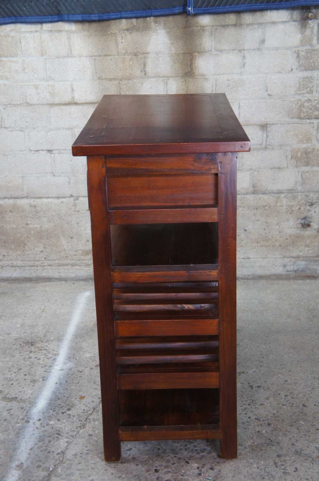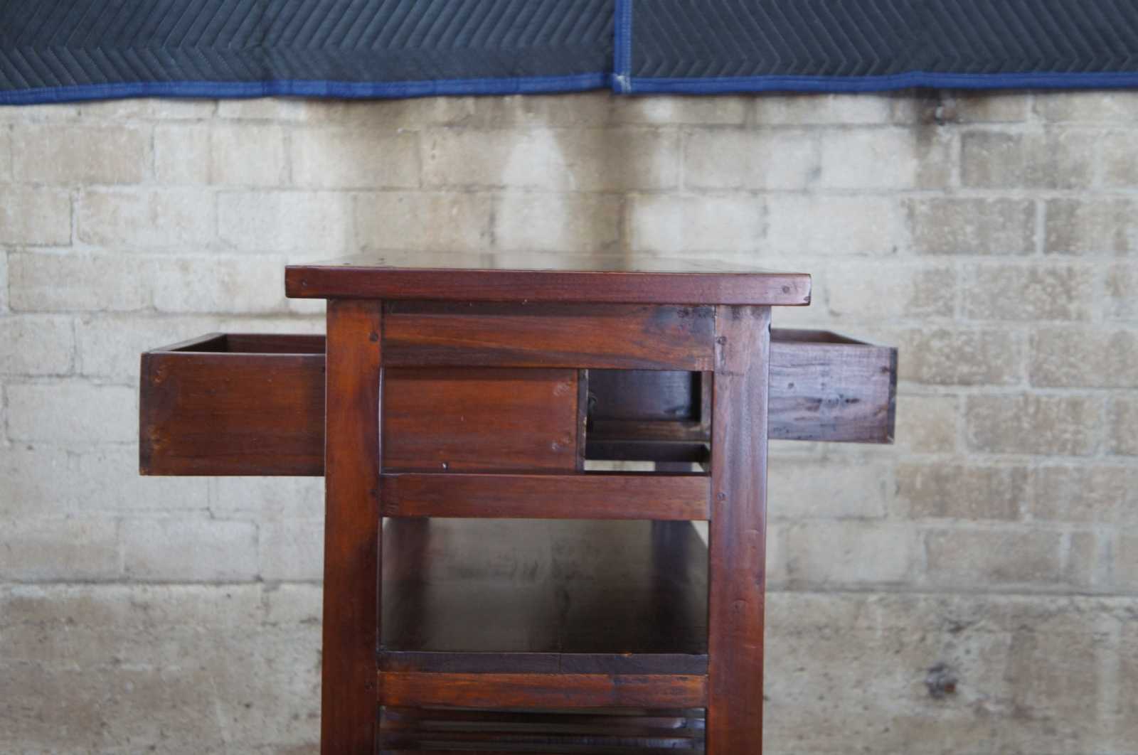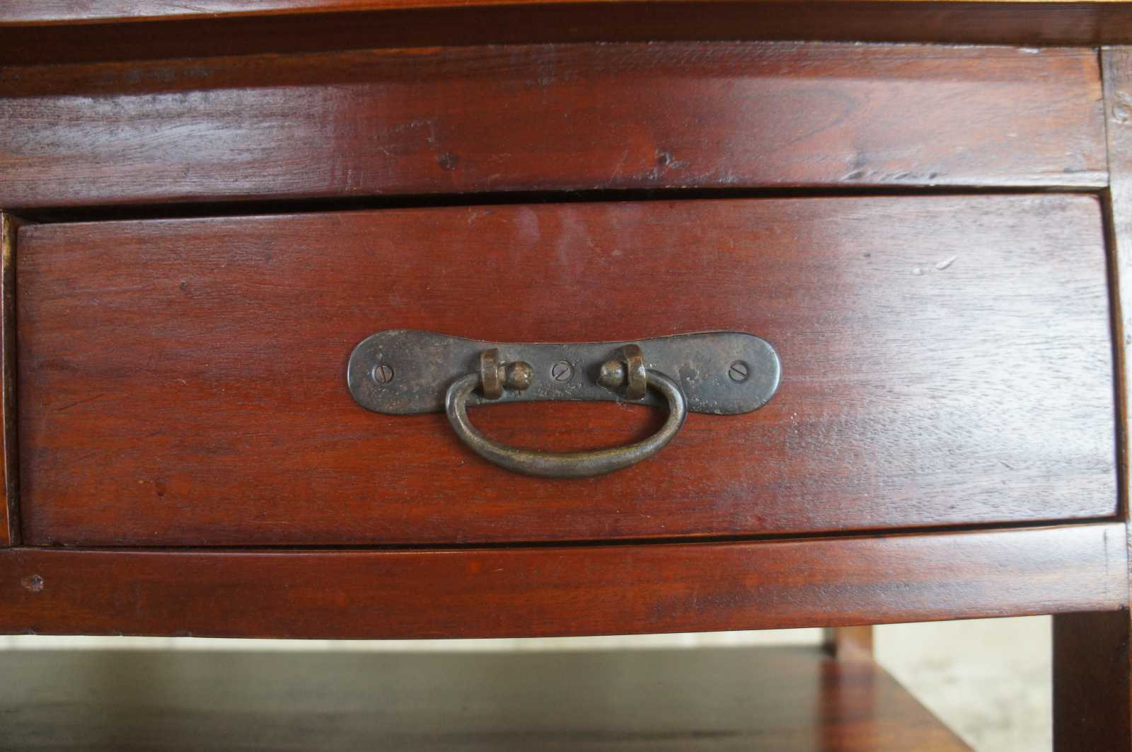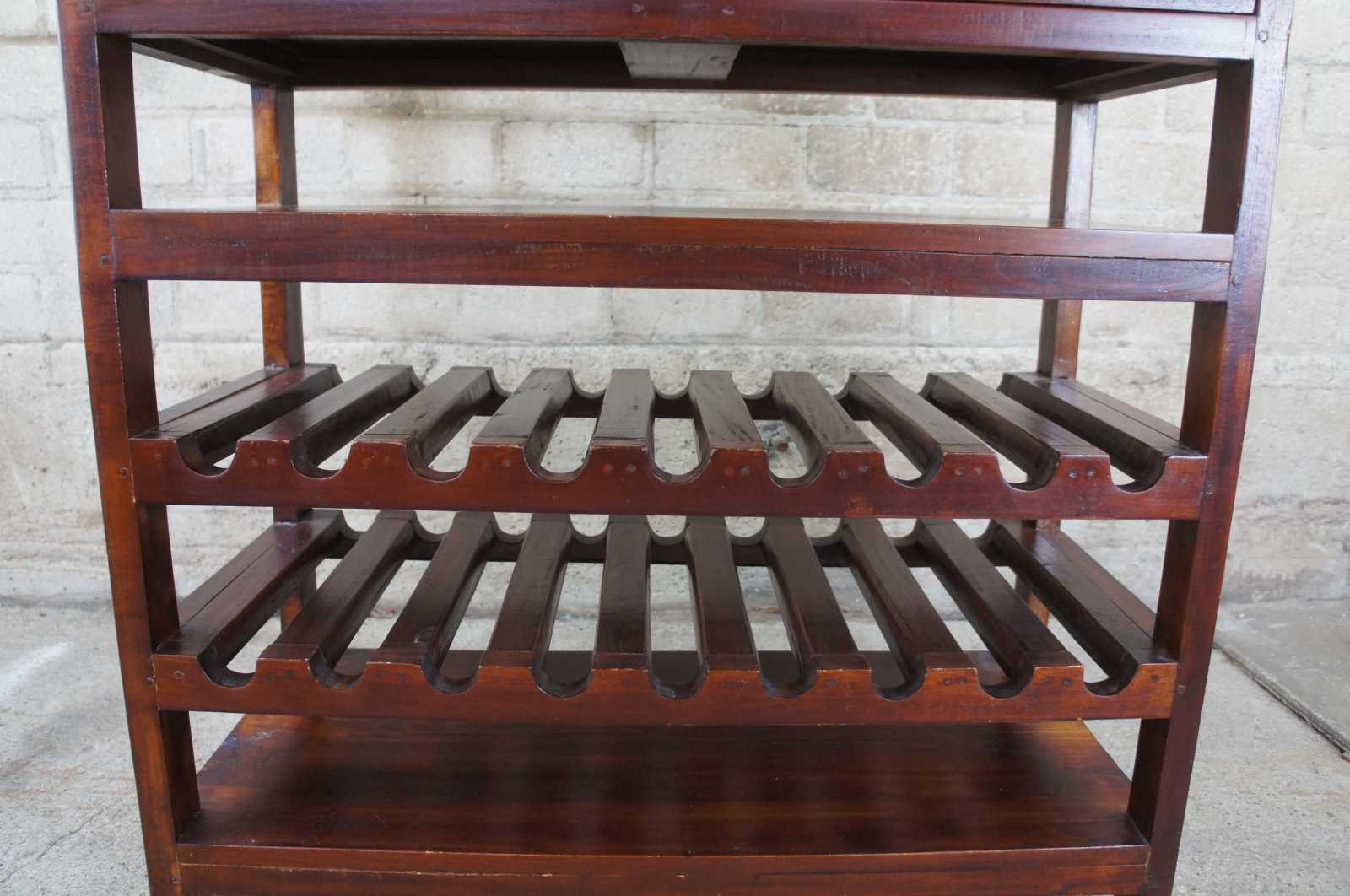 Two sided wine storage table or server. Finished in Mahogany with 2 drawers, storage for 18 bottles and 2 shelves.