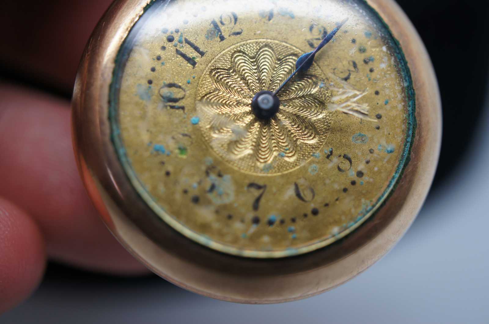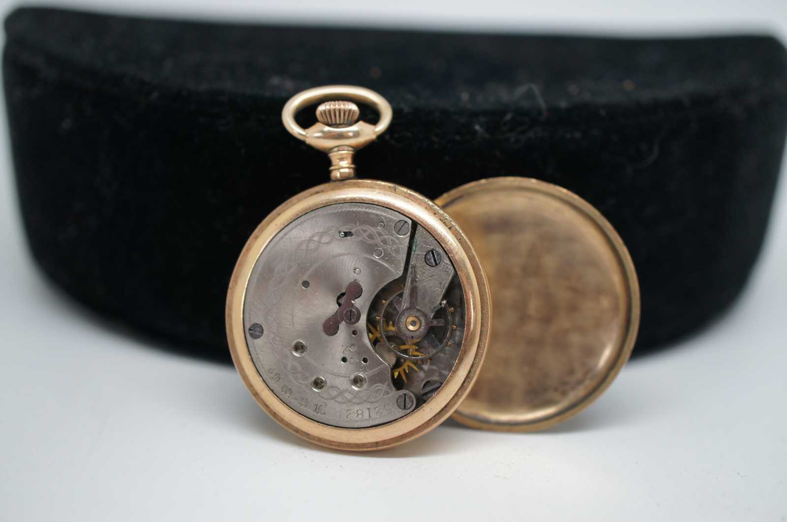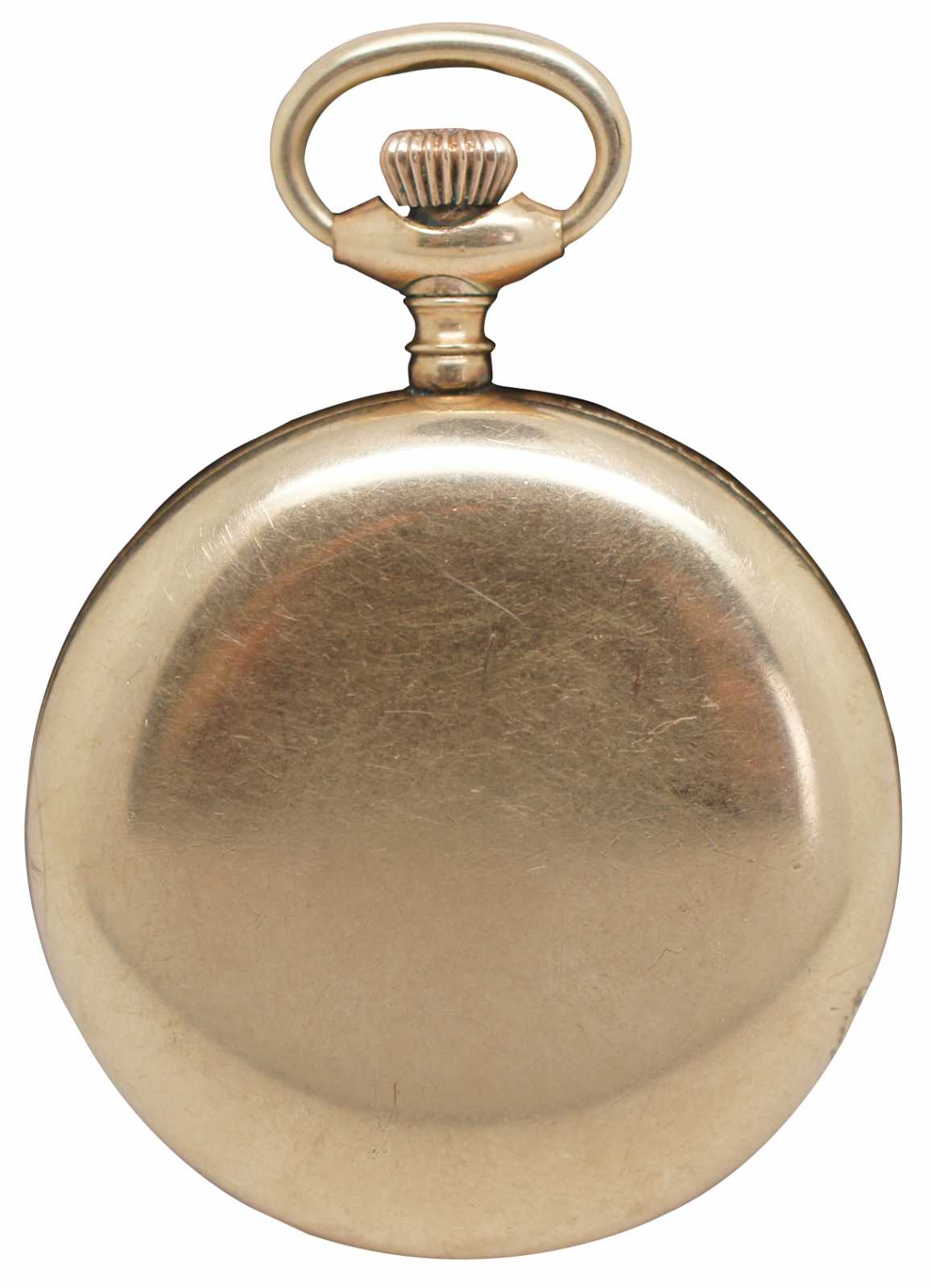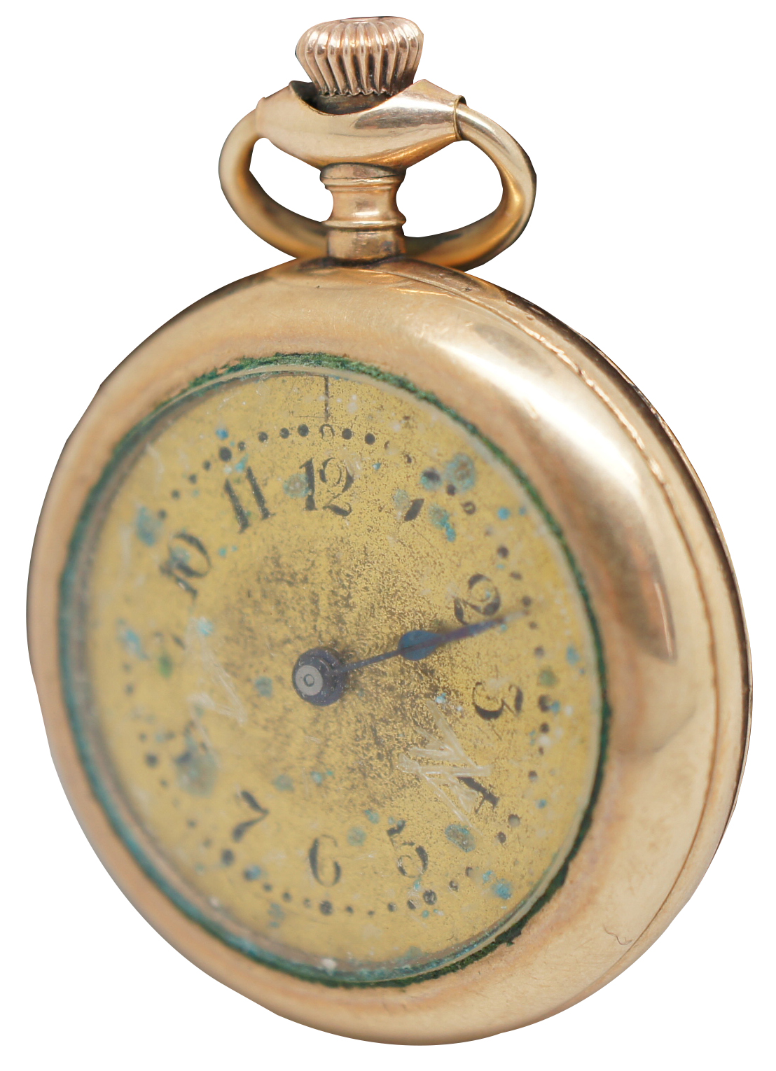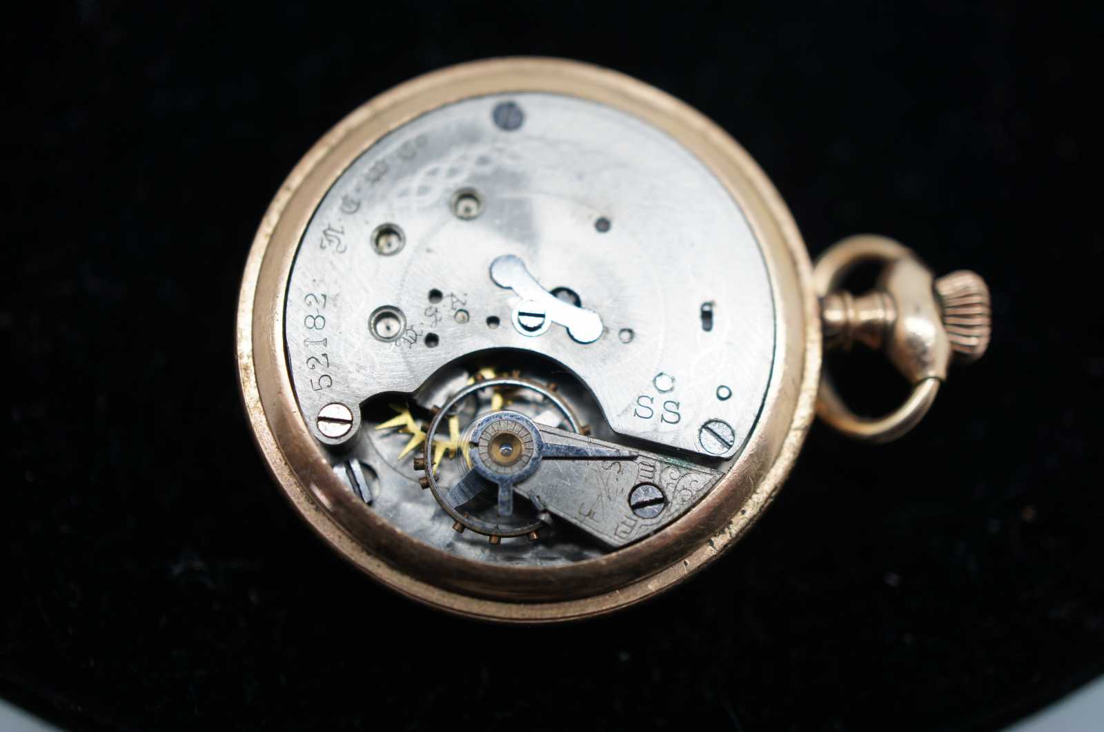 Petite antique pocket watch by the New England Watch Company with metallic gold face and gold filled case.