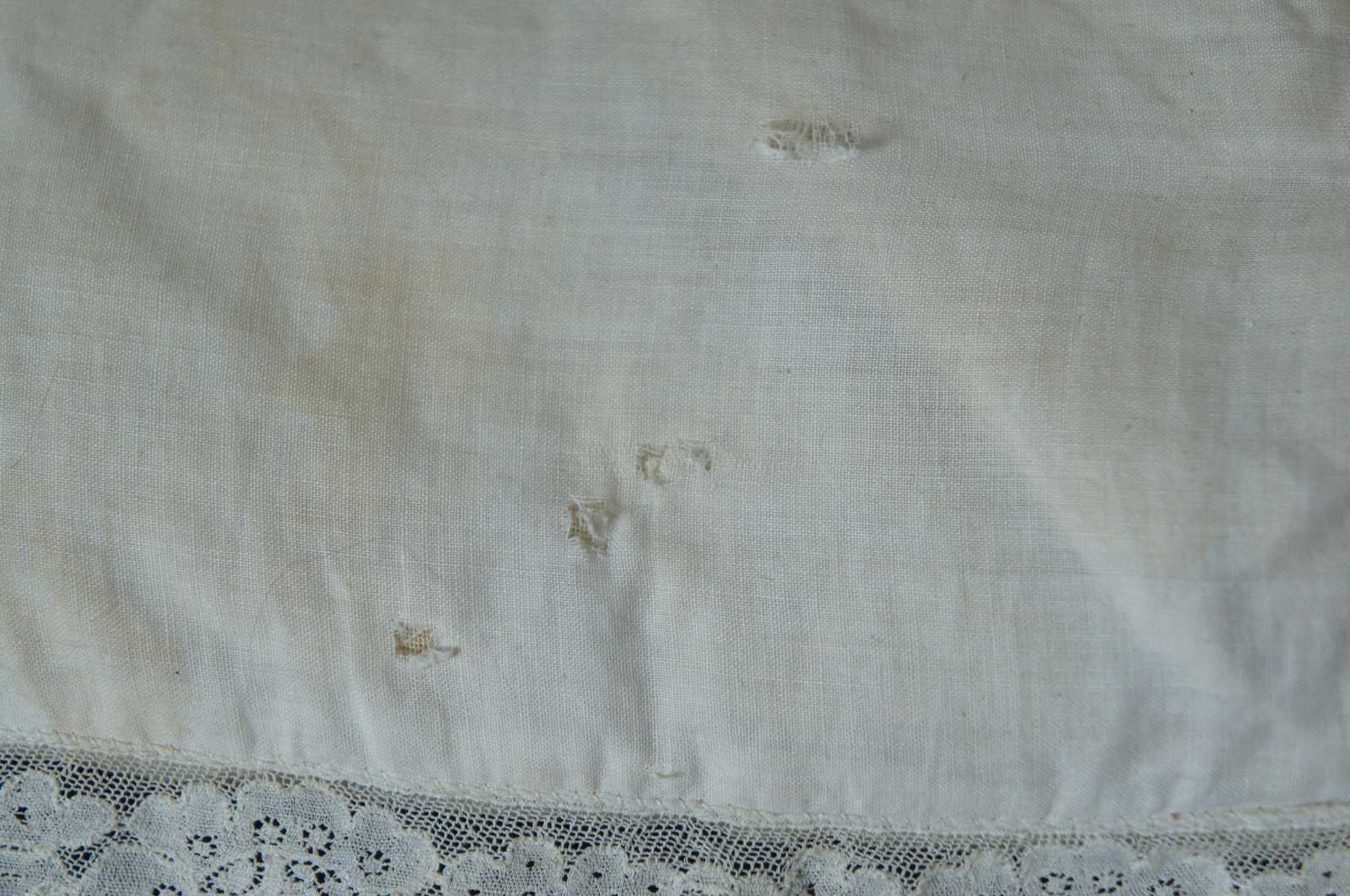 Good Overall - Yellowed; couple small wear holes; thin/worn pillow form; see pictures