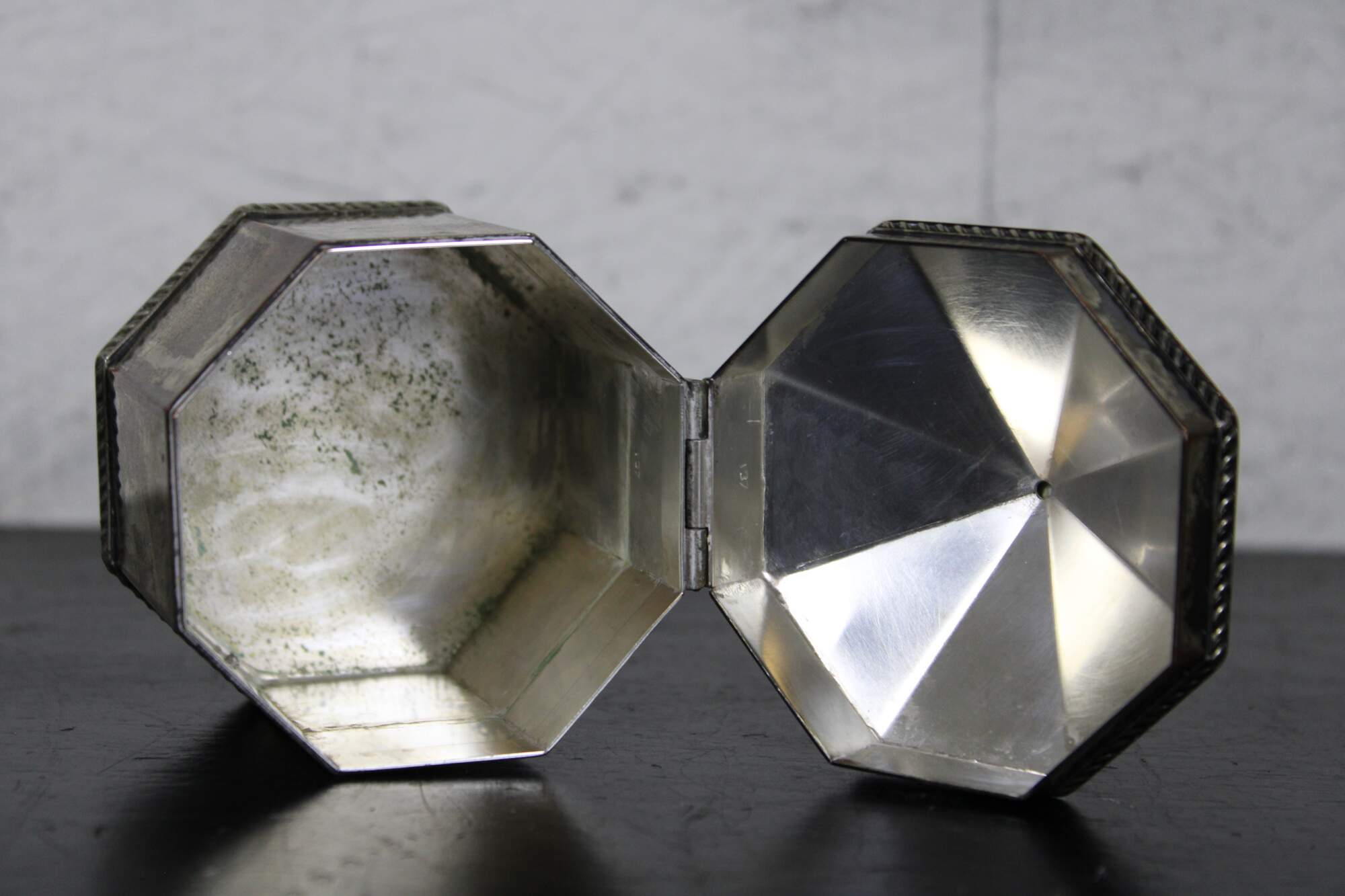 Antique silver plate on copper, octagonal tea caddy or trinket box.
