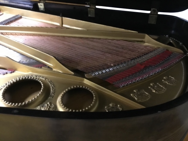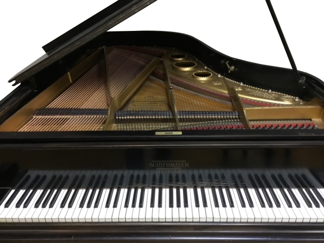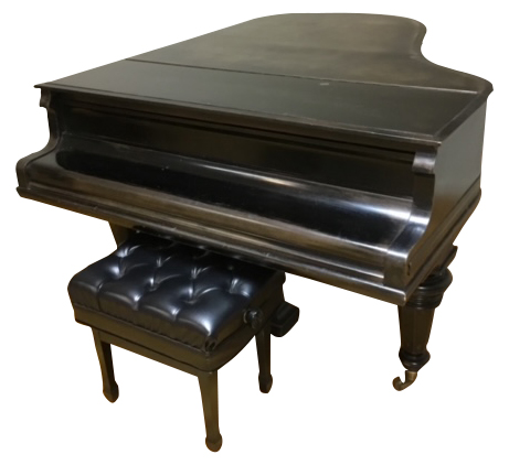 Schiedmayer 6’ 4” Grand Piano. Built in 1914 in Stuttgart, Germany. Strong sounding piano. Un-restored condition. Just tuned. Pinblock is tight. Several cracks in soundboard that do not affect the sound (see pictures). New bass strings. Nice original piano keys only a couple of chips. Original faded ebony finish consistent with years of normal wear. Never rebuilt, but good candidate for restoration. Includes Jansen artist bench.