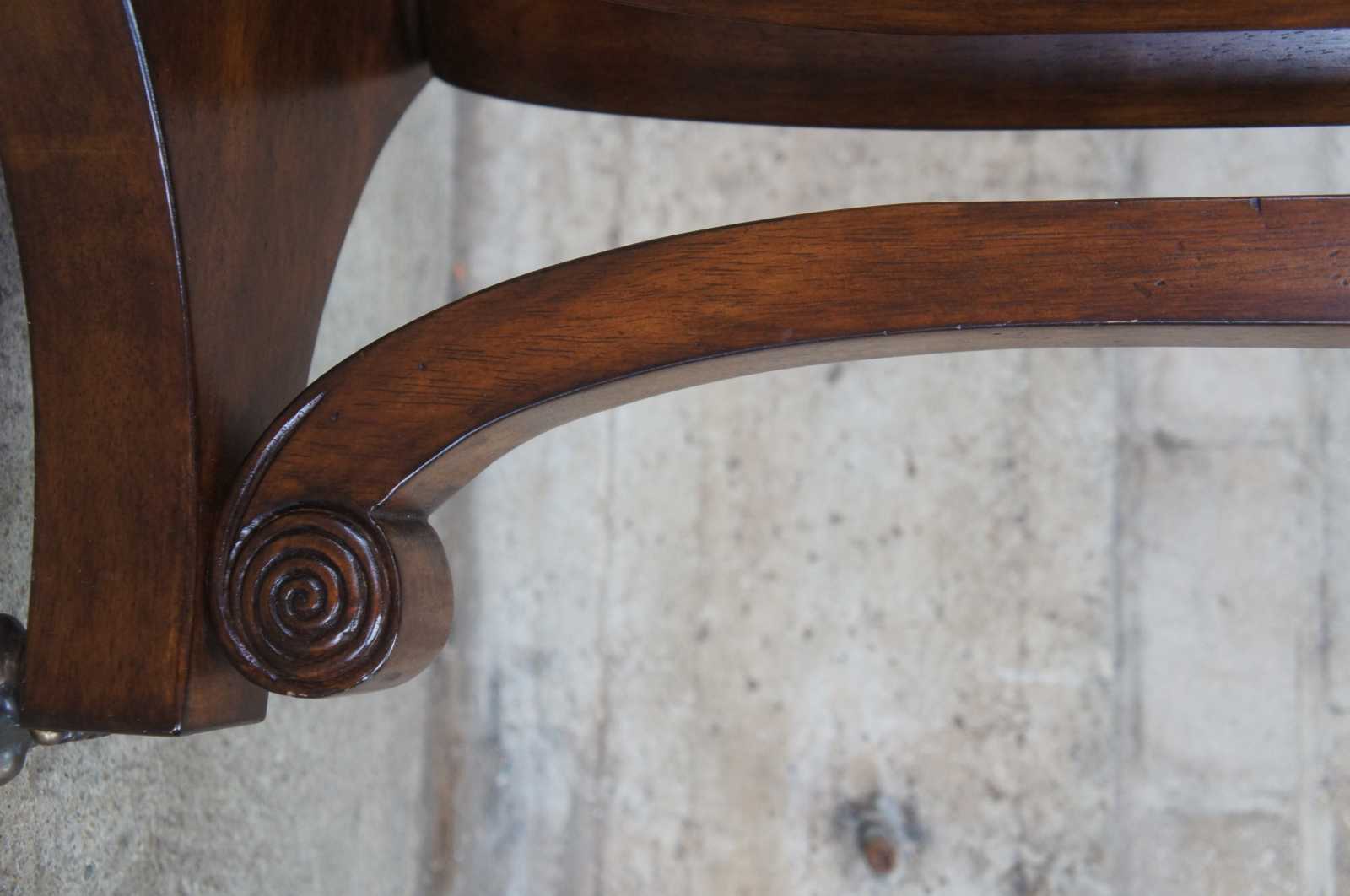 2 Sarreid Ltd marble top pedestals. Made from mahogany with tripod base over ball and claw feet. #18787