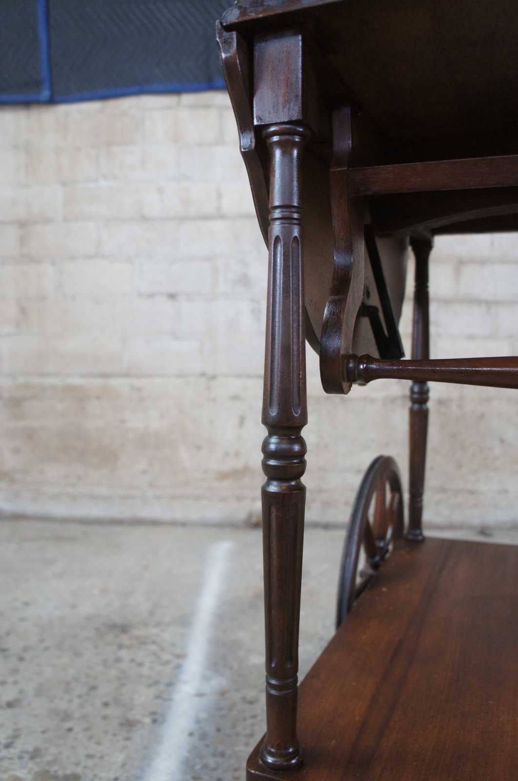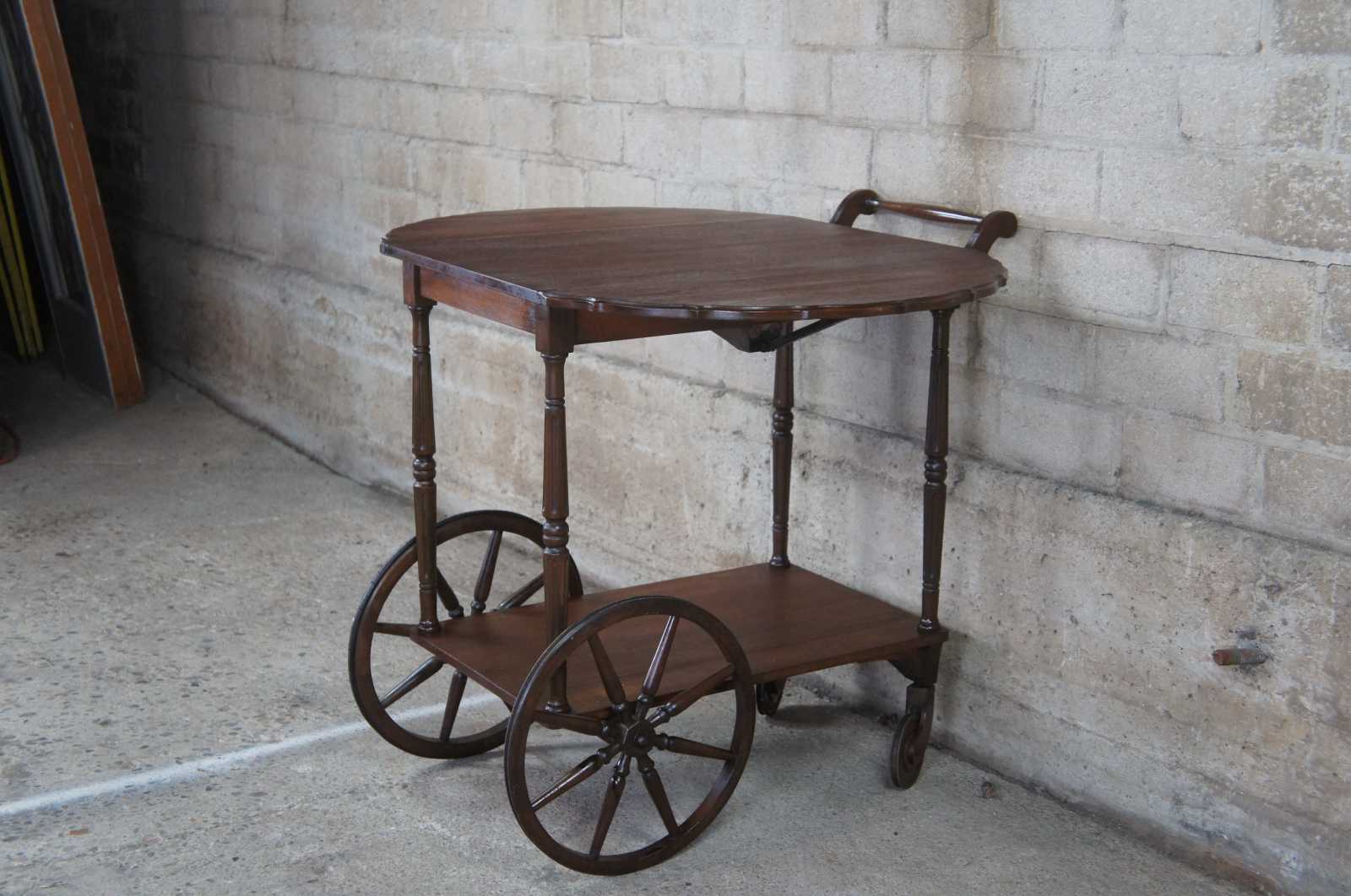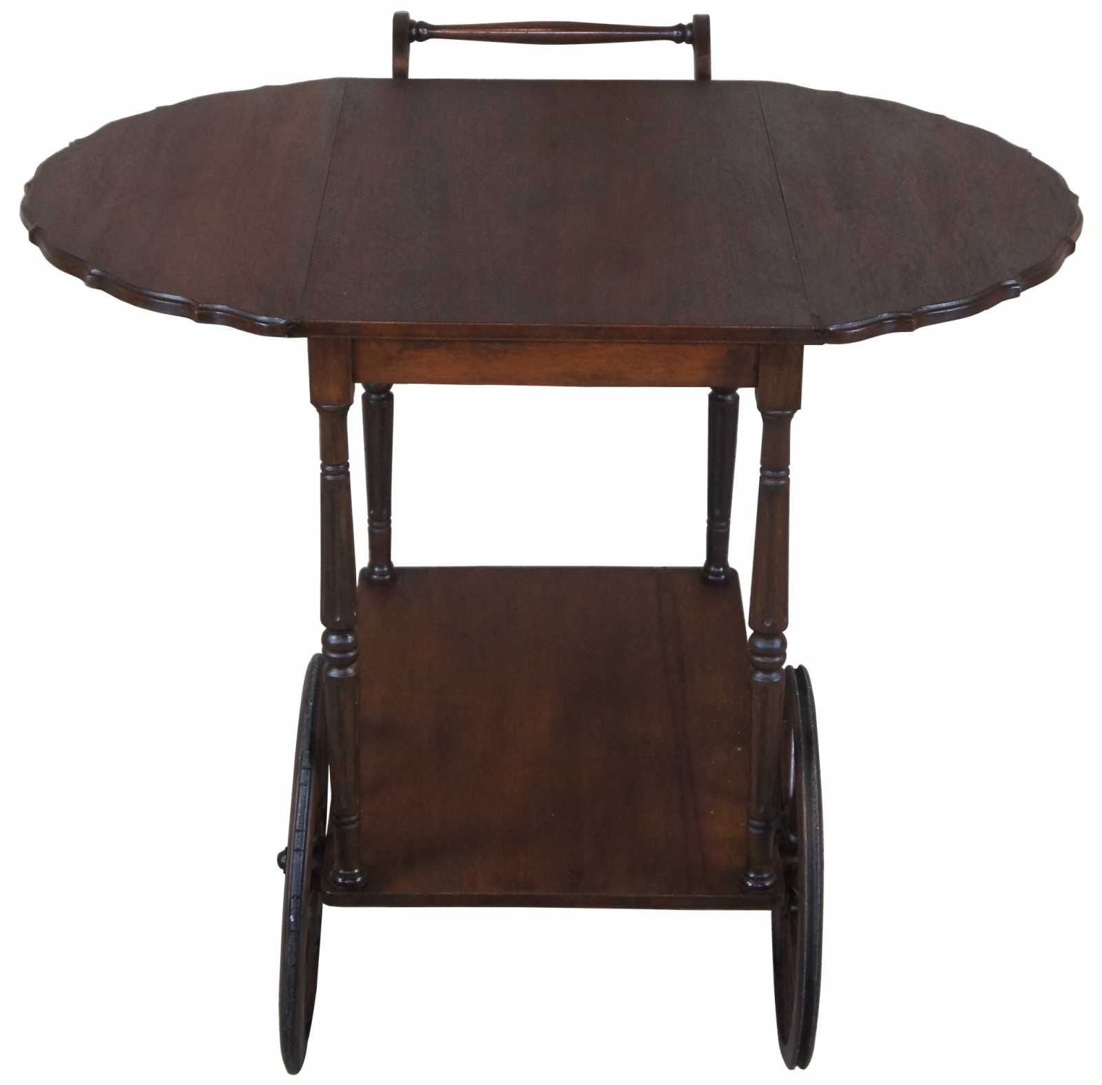 Circa 1970s Hammary tea wagon or cart #22229. Features French Louis XV / Provincial styling with scalloped top, drop leaves and large wheels and castors.