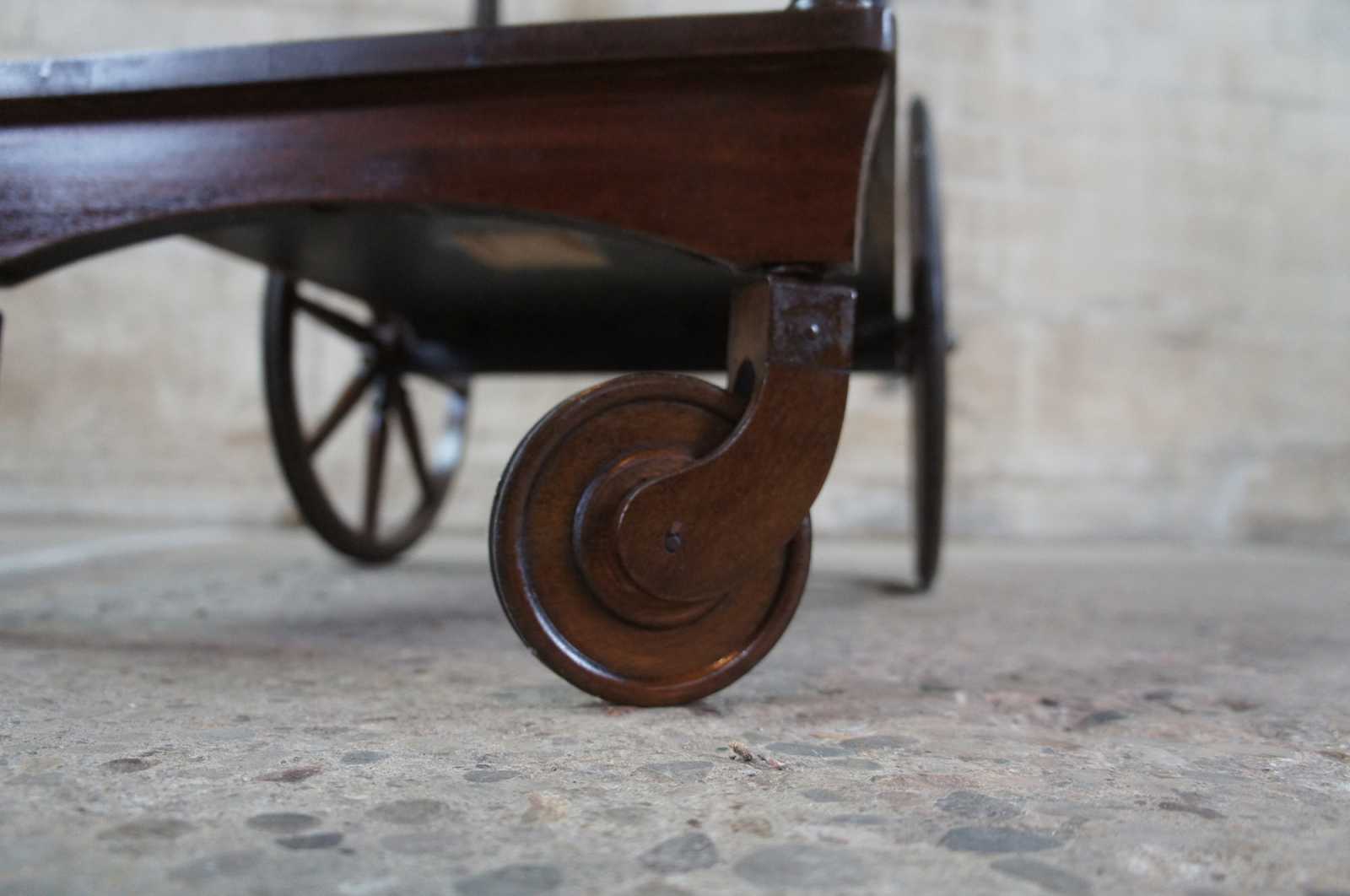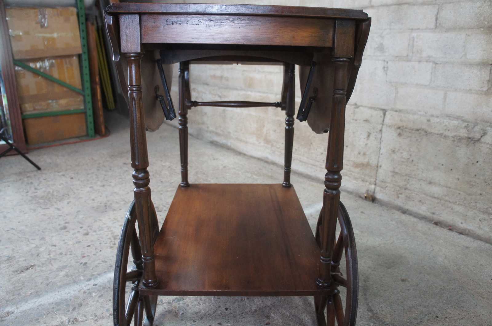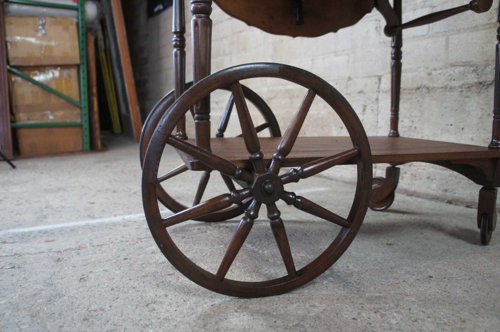 Circa 1970s Hammary tea wagon or cart #22229. Features French Louis XV / Provincial styling with scalloped top, drop leaves and large wheels and castors.