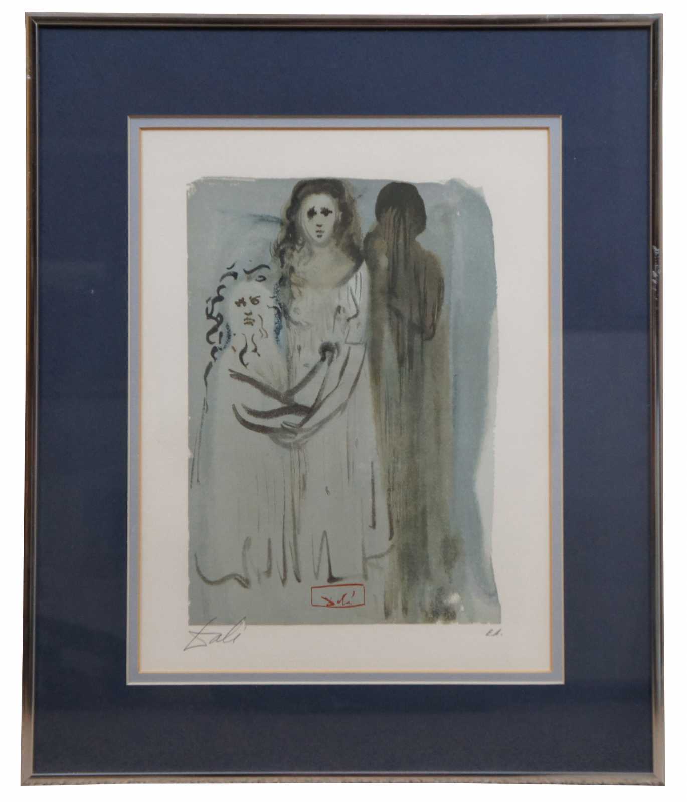 Framed original woodcut artist’s proof print, pencil signed by Salvador Dali - Purgatory Canto 16 from the “Divine Comedie” series. Includes certificate of authenticity.