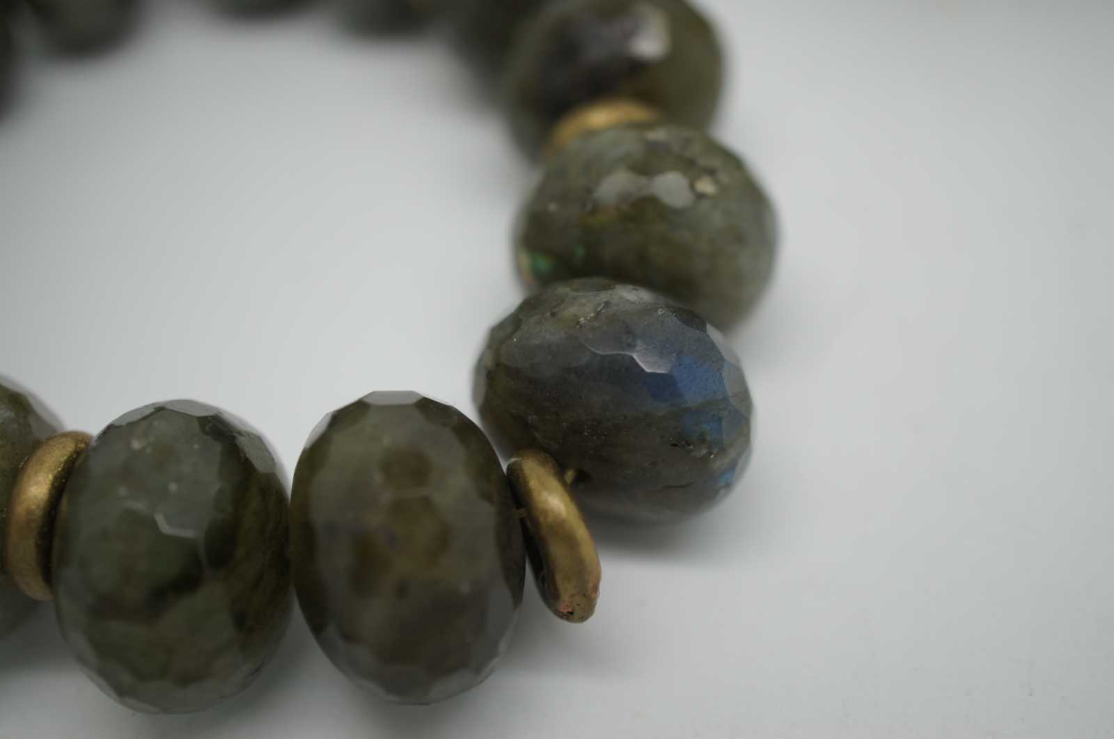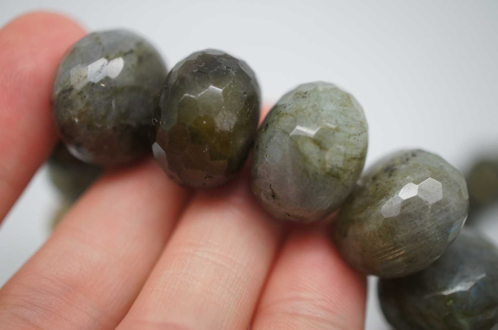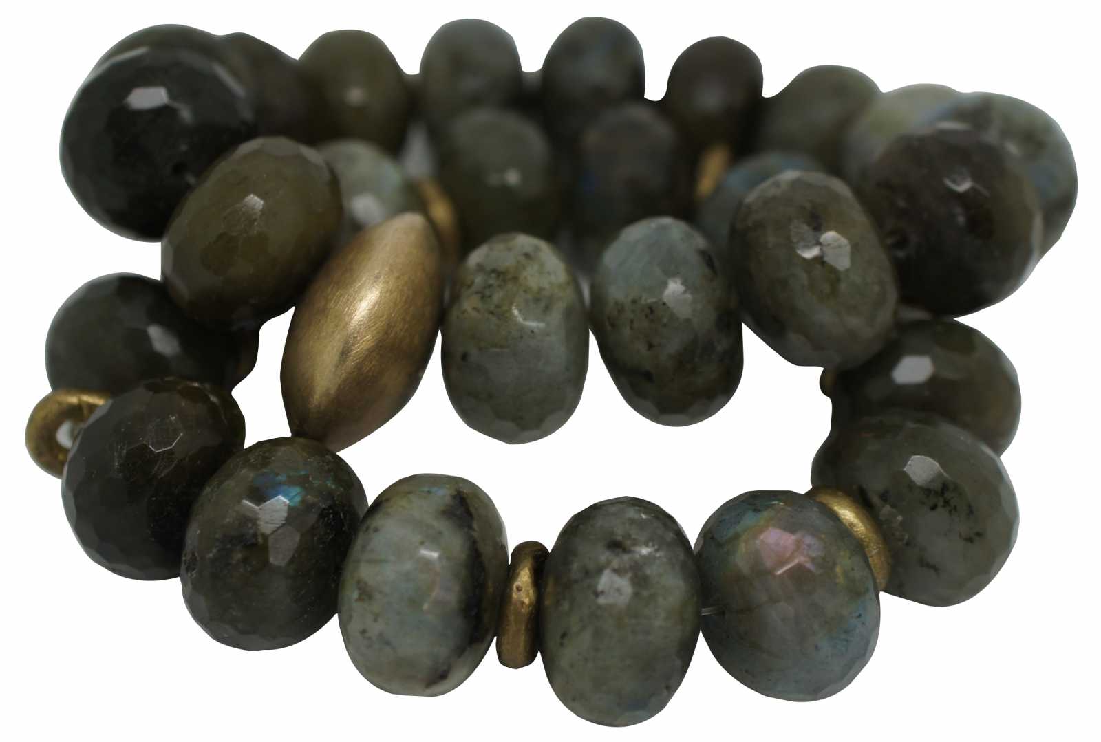 Pair of elasticized gray and green faceted labradorite bead bracelets.