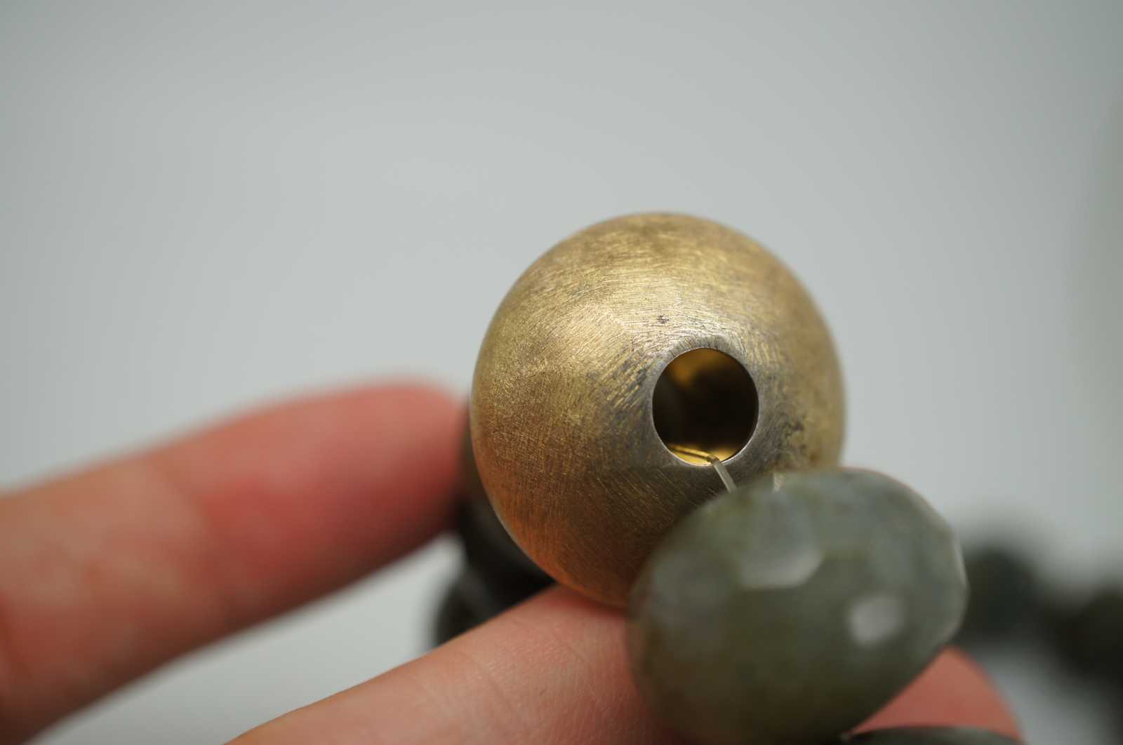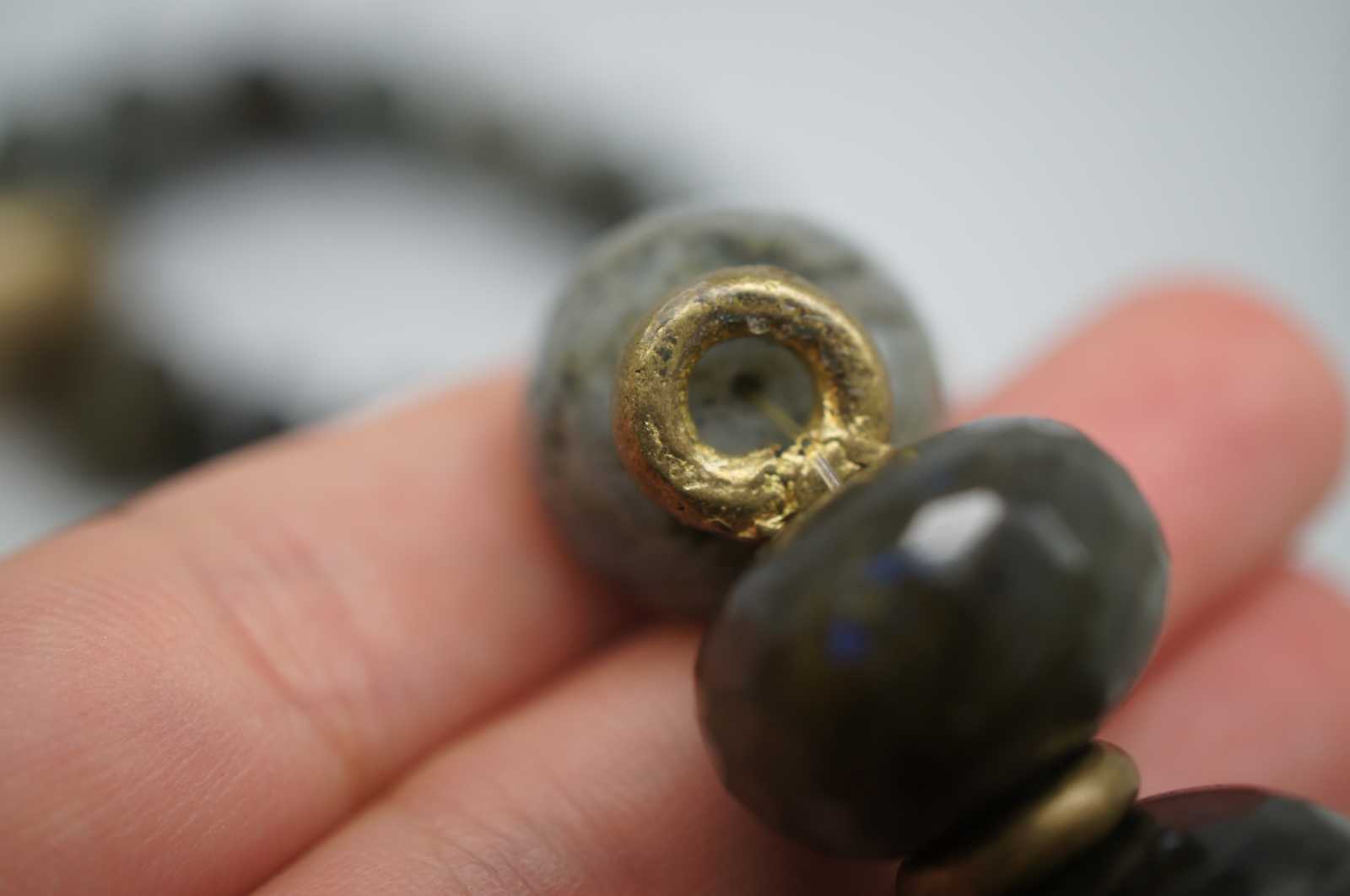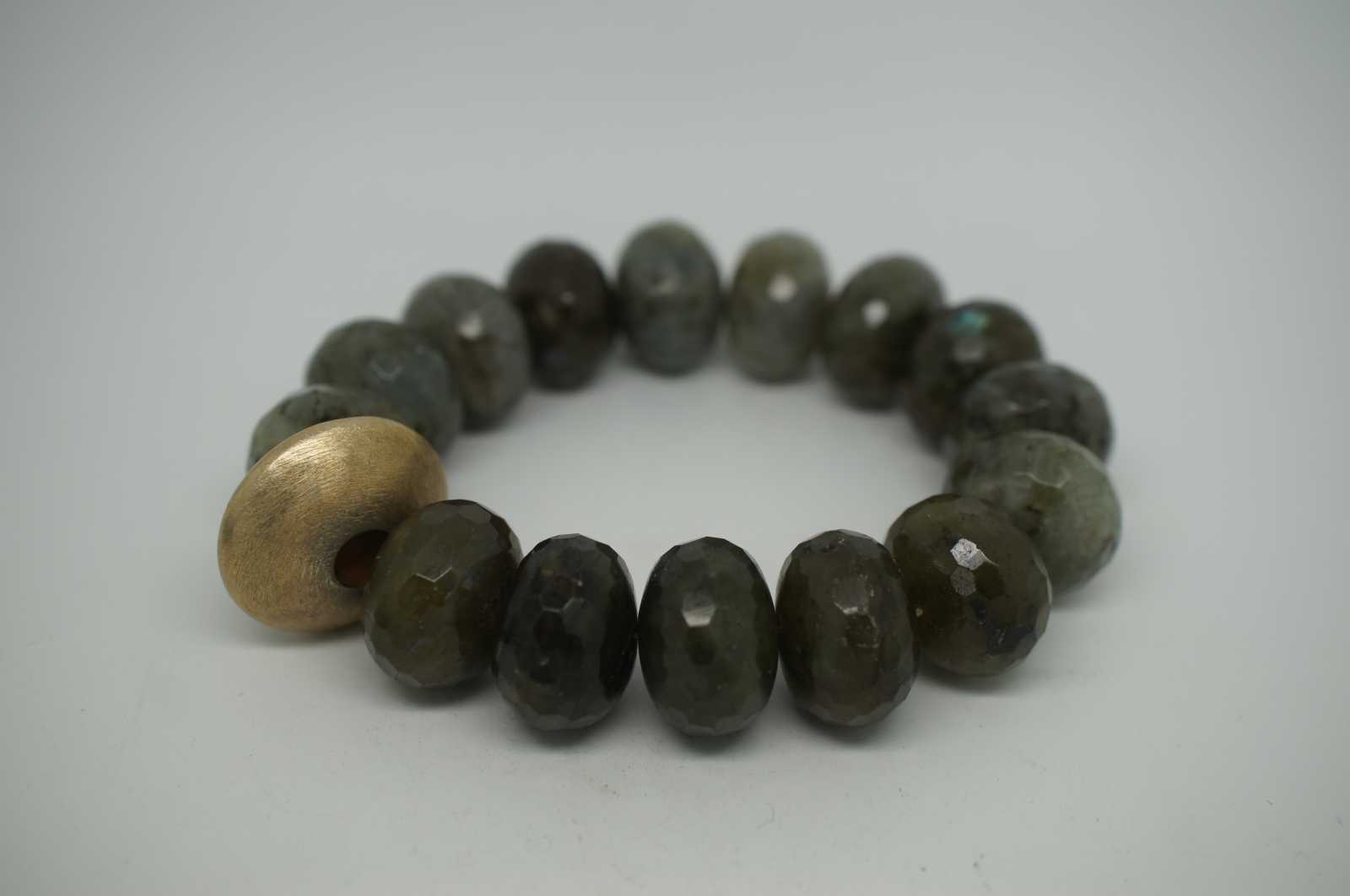 Pair of elasticized gray and green faceted labradorite bead bracelets.