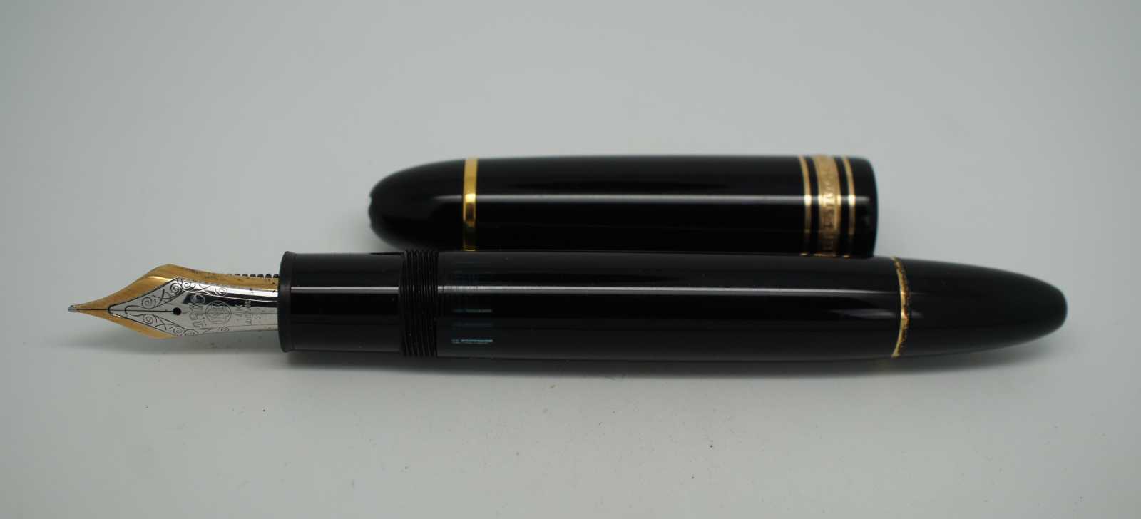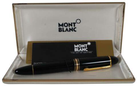 Vintage Montblanc Meisterstuck No 149 black reservoir style fountain pen with two tone 4810 14K gold 585; includes box.
