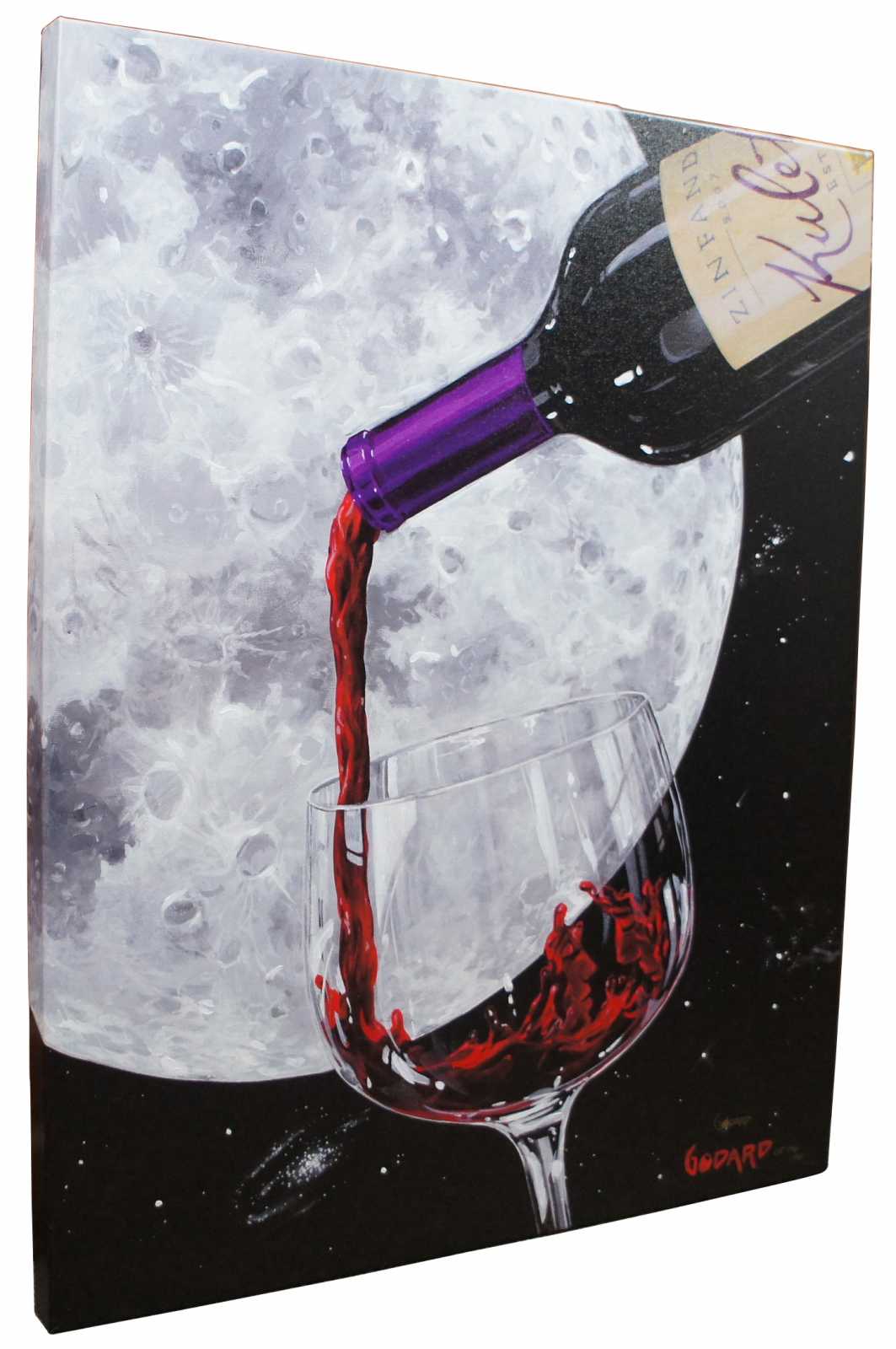 Limited edition, hand enhanced Gallery Proof giclee on canvas of “Lovers Moon II” by Michael Godard, signed and numbered in gold (number 140 of 150), produced by Max Art Productions.