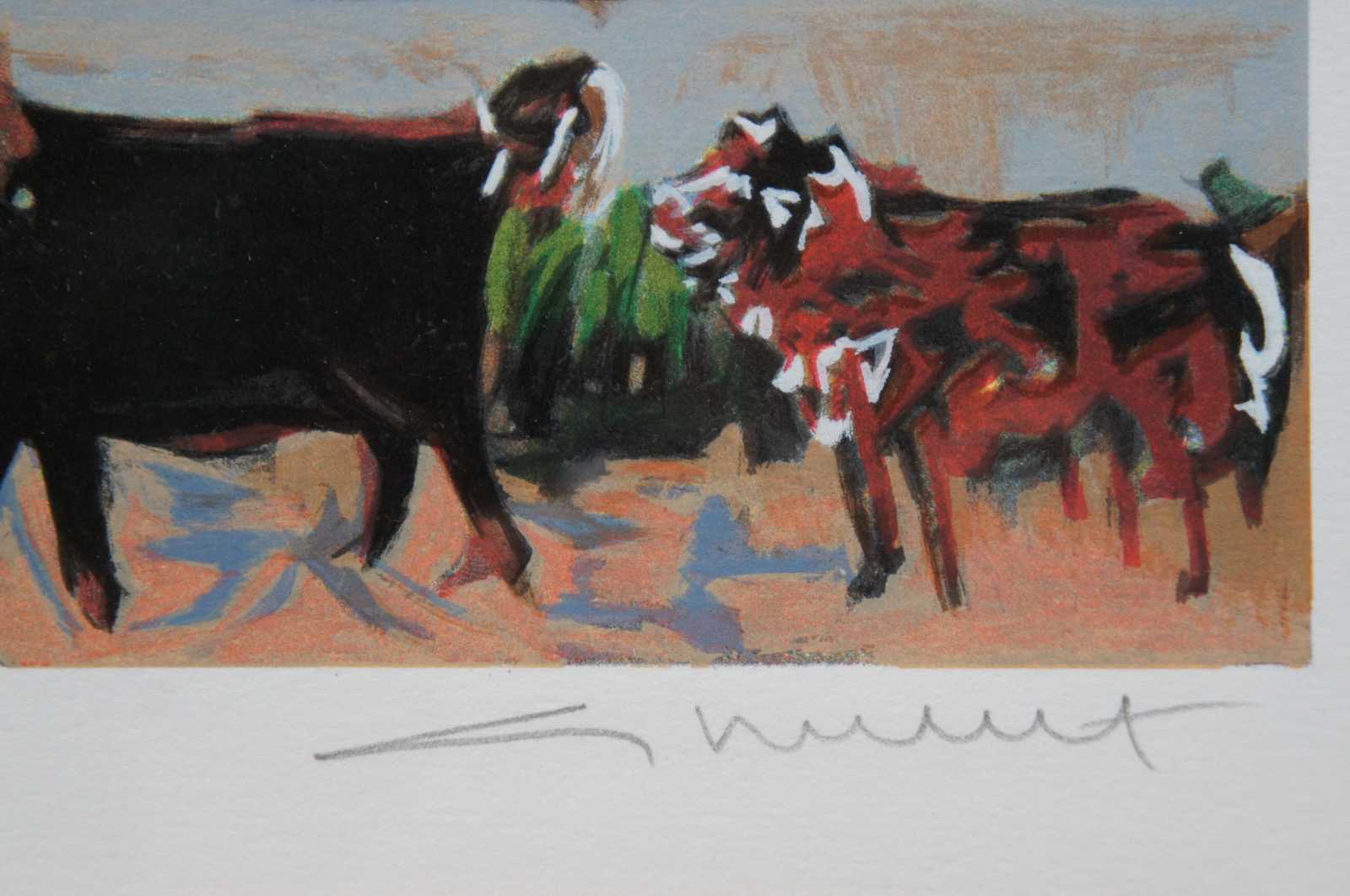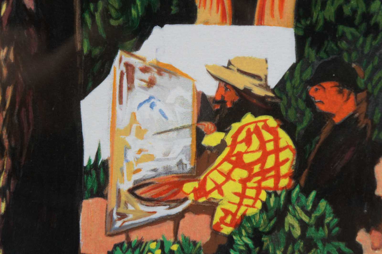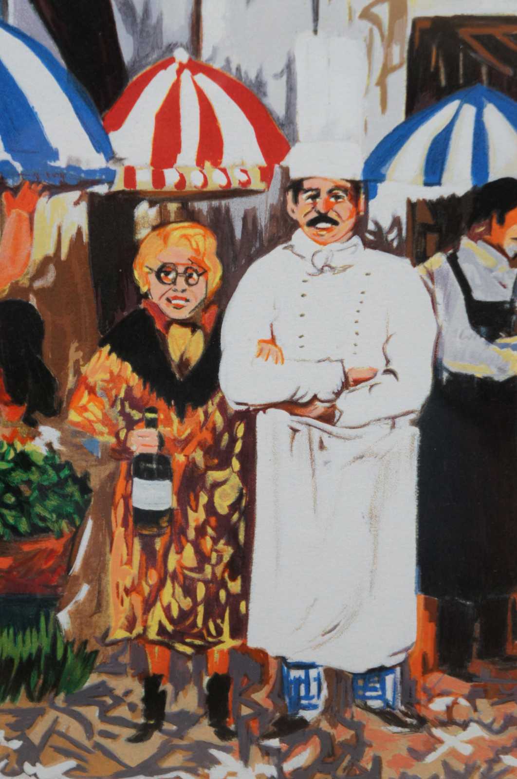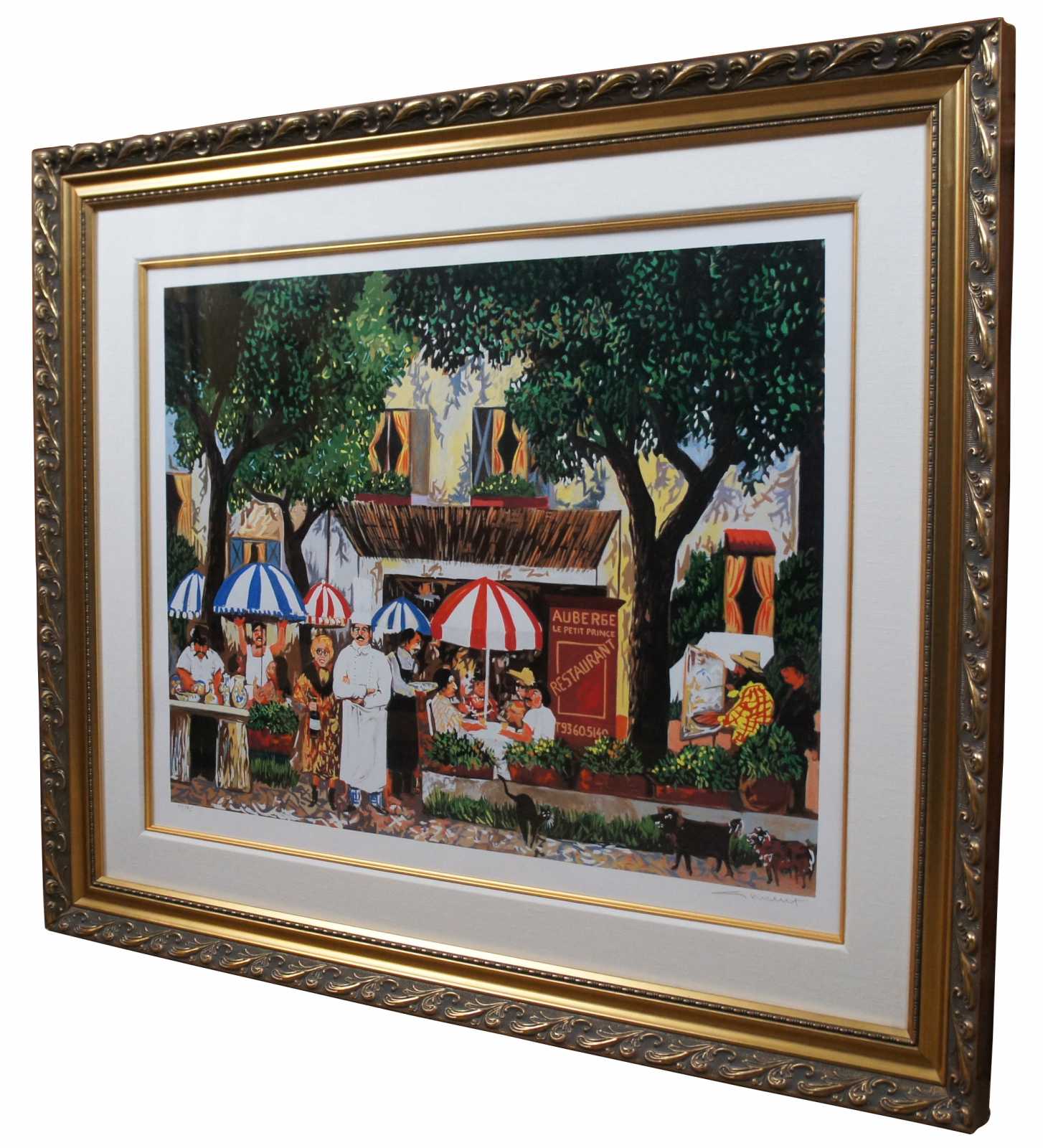 Pencil signed and numbered 77/595 Guy Buffet serigraph print titled Le Petit Prince, depicting a street scene cityscape of a French restaurant named Cafe Auberge.