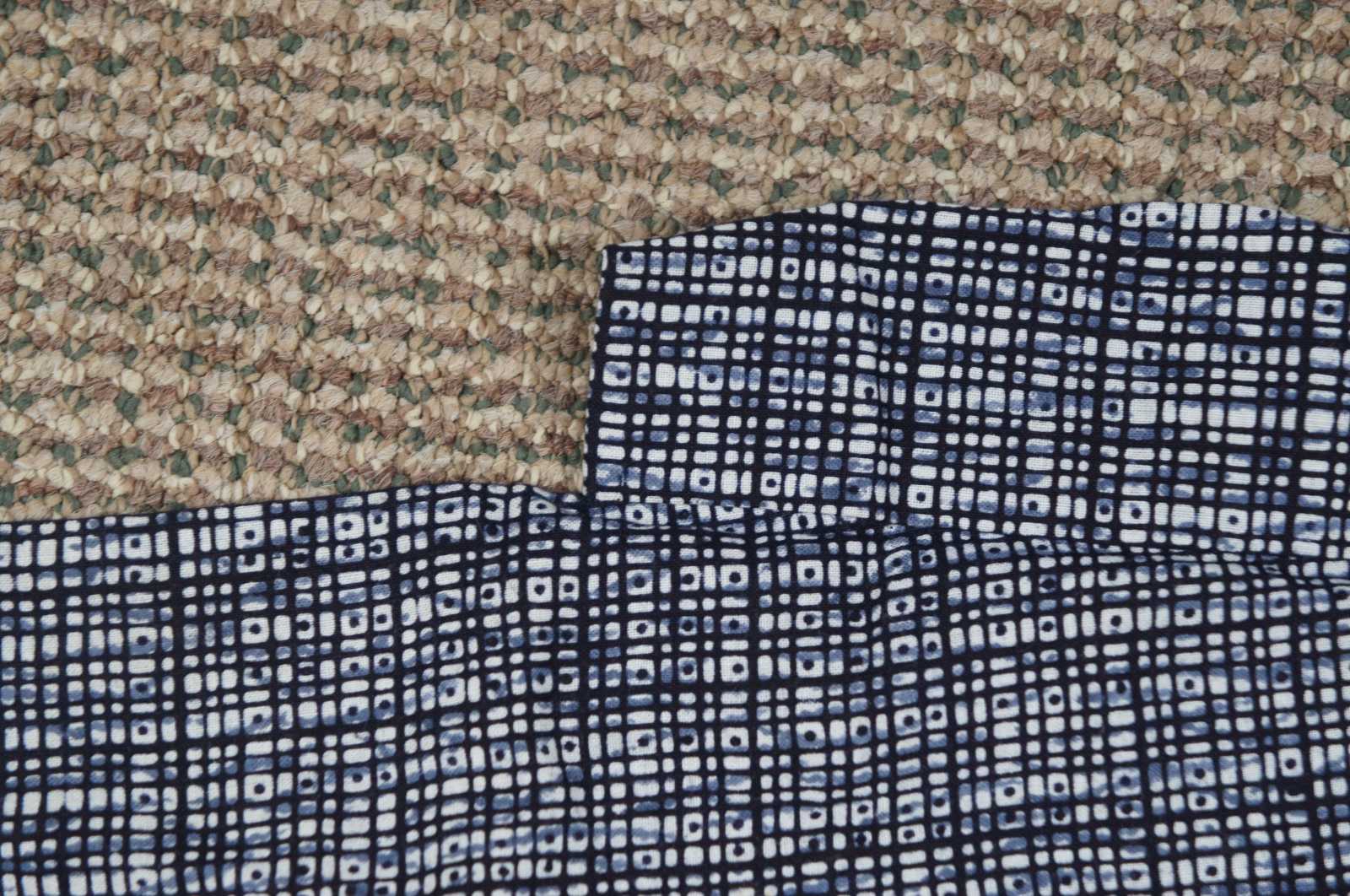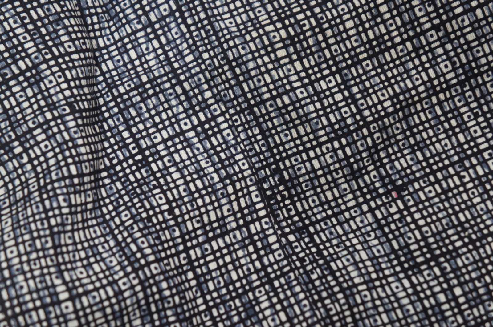 Vintage Japanese cotton Yukata kimono or robe featuring a blue and white modernist print.