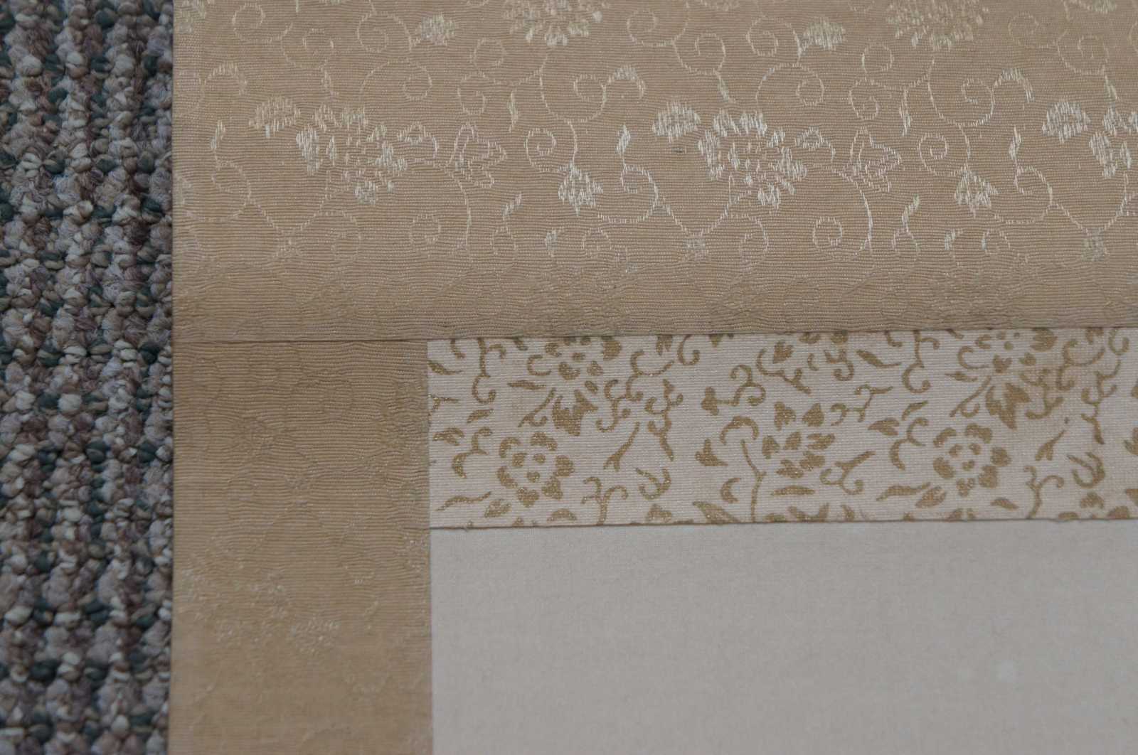Vintage Chinese painting of a bird on a fruiting branch on wall hanging silk scroll.