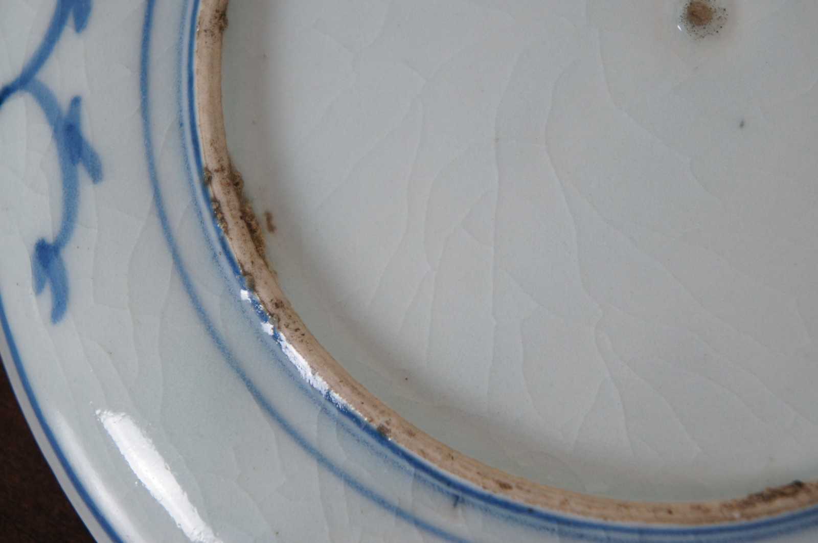 Two 18th century Chinese porcelain plates from the Kang Xi period featuring a pattern of leaves, flowers and pine cones.