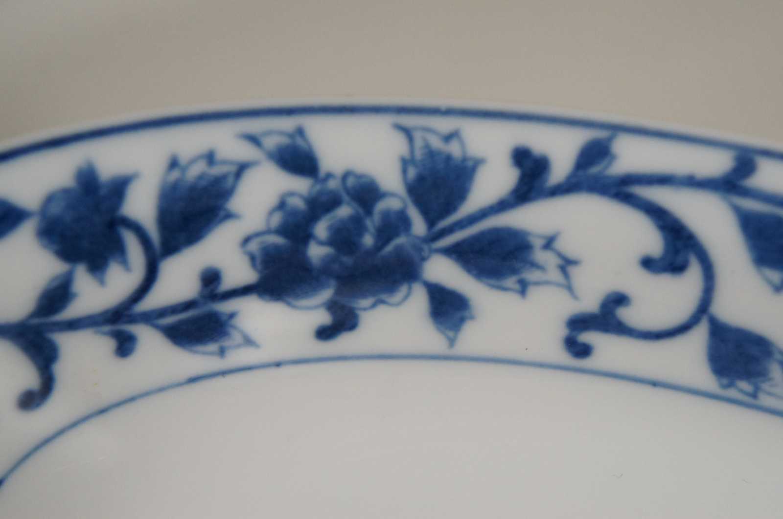 Vintage oval platter and vegetable dish by Nippon Royal Sometuke in white porcelain with a blue flowering vine border.