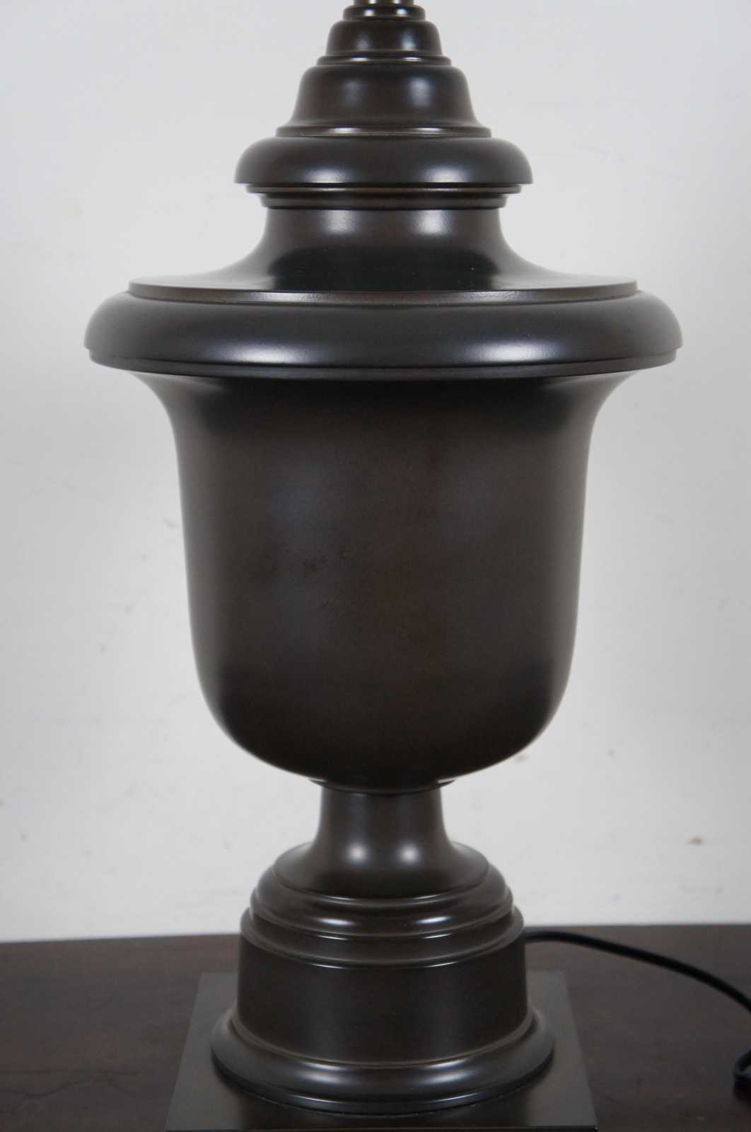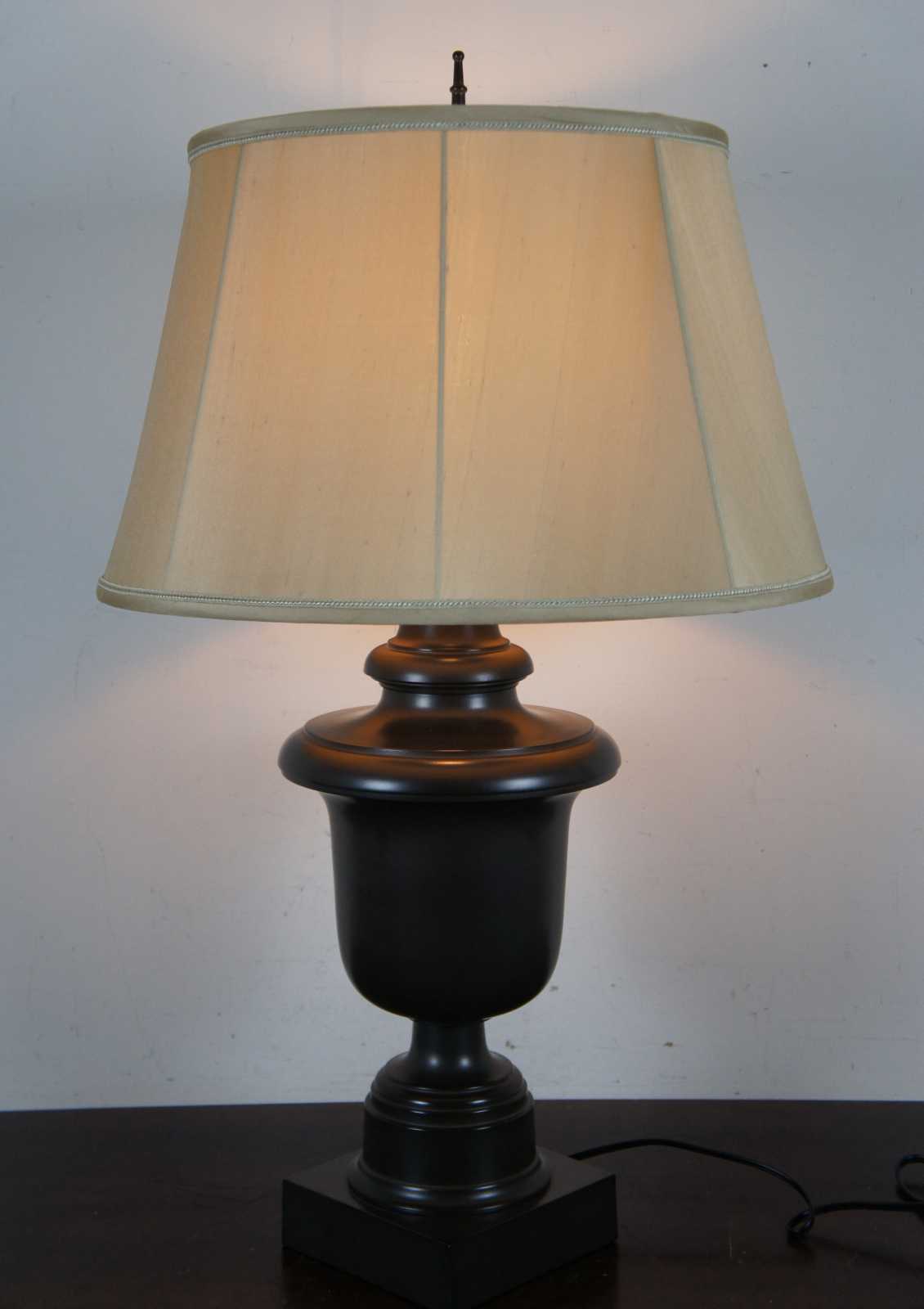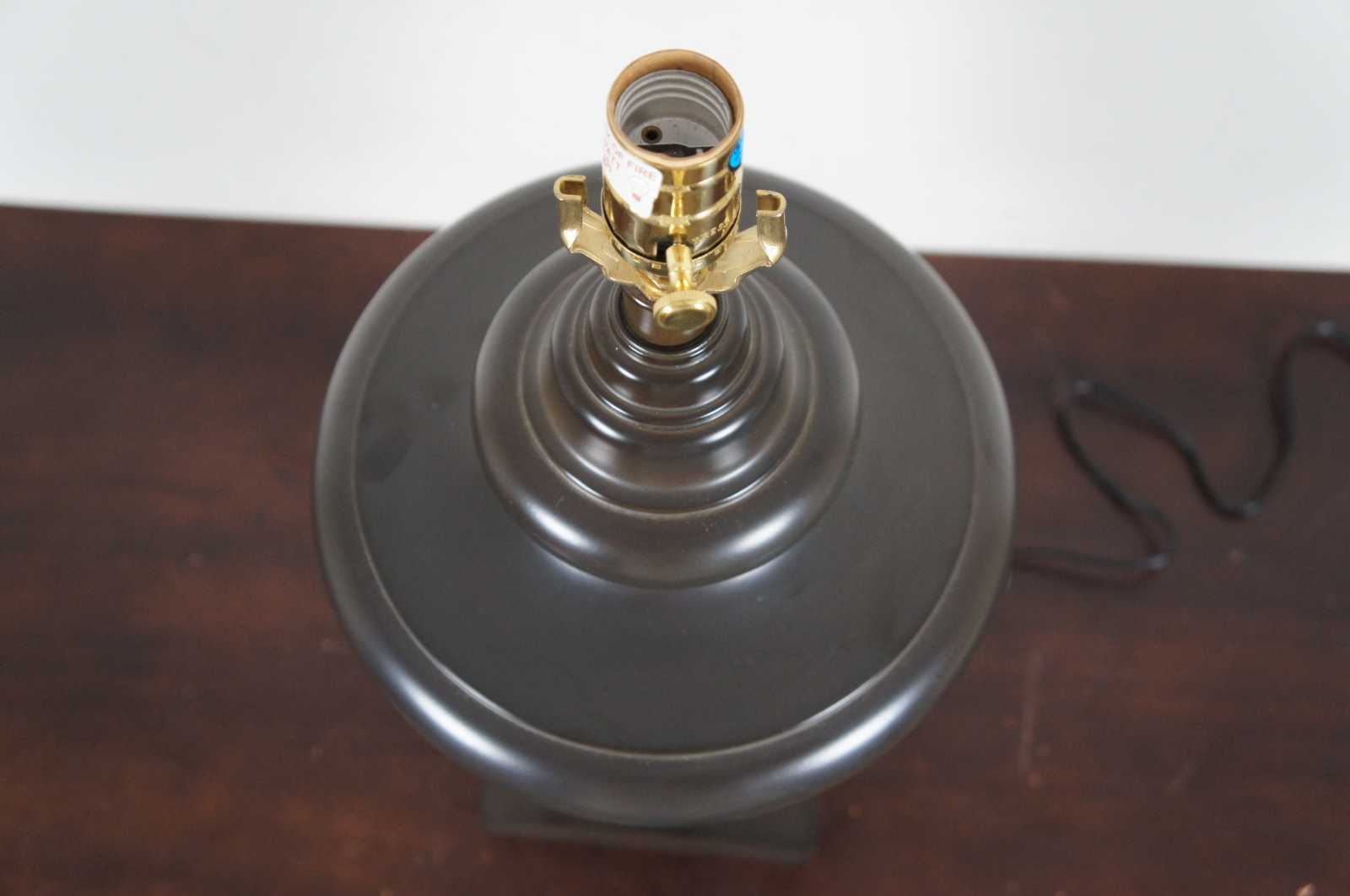 Templeton 7102G urn table lamp, way buddha bronze with golden beige cast metal empire shade with matching soutache - Robert Abbey