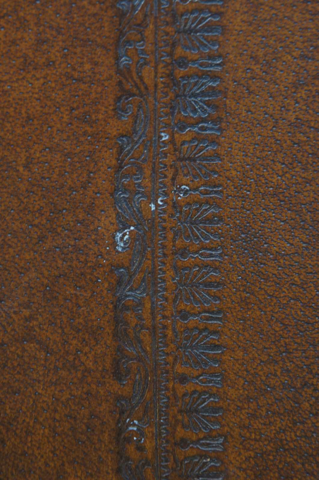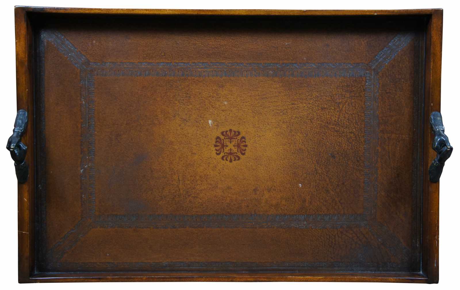 Theodore Alexander Victorian Library Tray made of wood with rectangular form and gallery with a tooled leather surface and bronze clasping handles. 1100-842BD