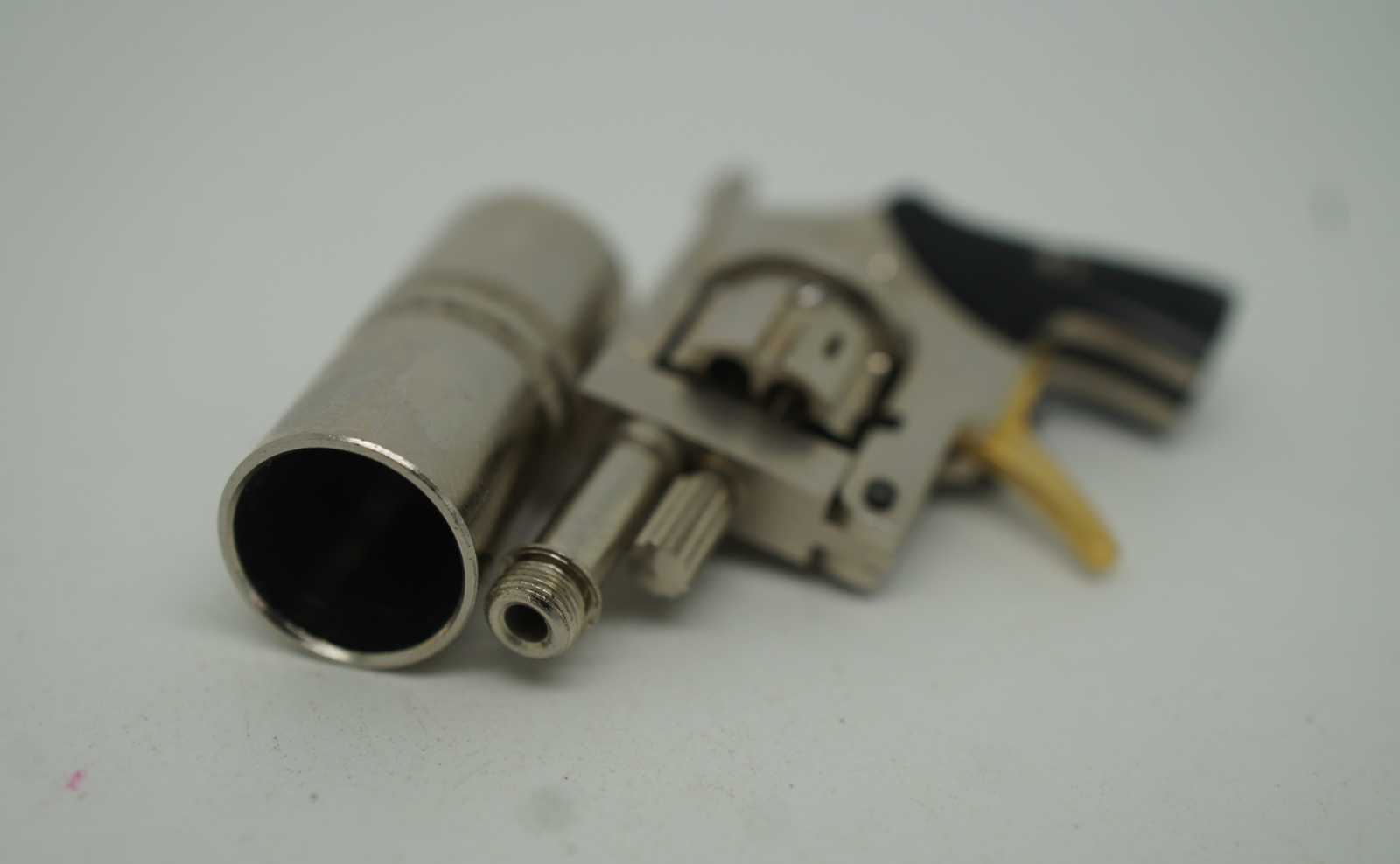 Vintage Xythos Emergency Signal Equipment kit by Austrian watch makers Andres & Dworsky, producer A-3822 Karlstein / Thaya. Includes pin fire cap gun revolver, barrel mounted rocket launcher, 2mm blank cartridges, and red signal flares, all in a plastic case.