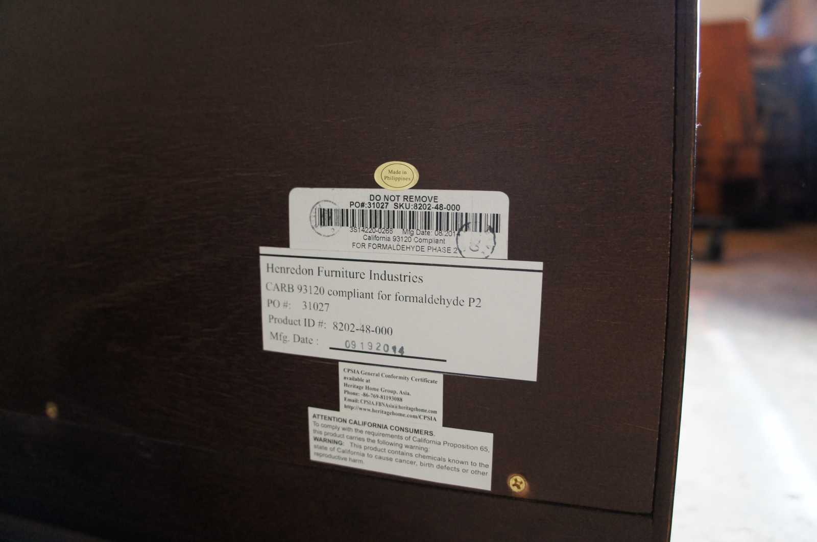 Stylish transitional four draw chest with green leather and Lacoste walnut, gold gilt accents, showroom floor sample