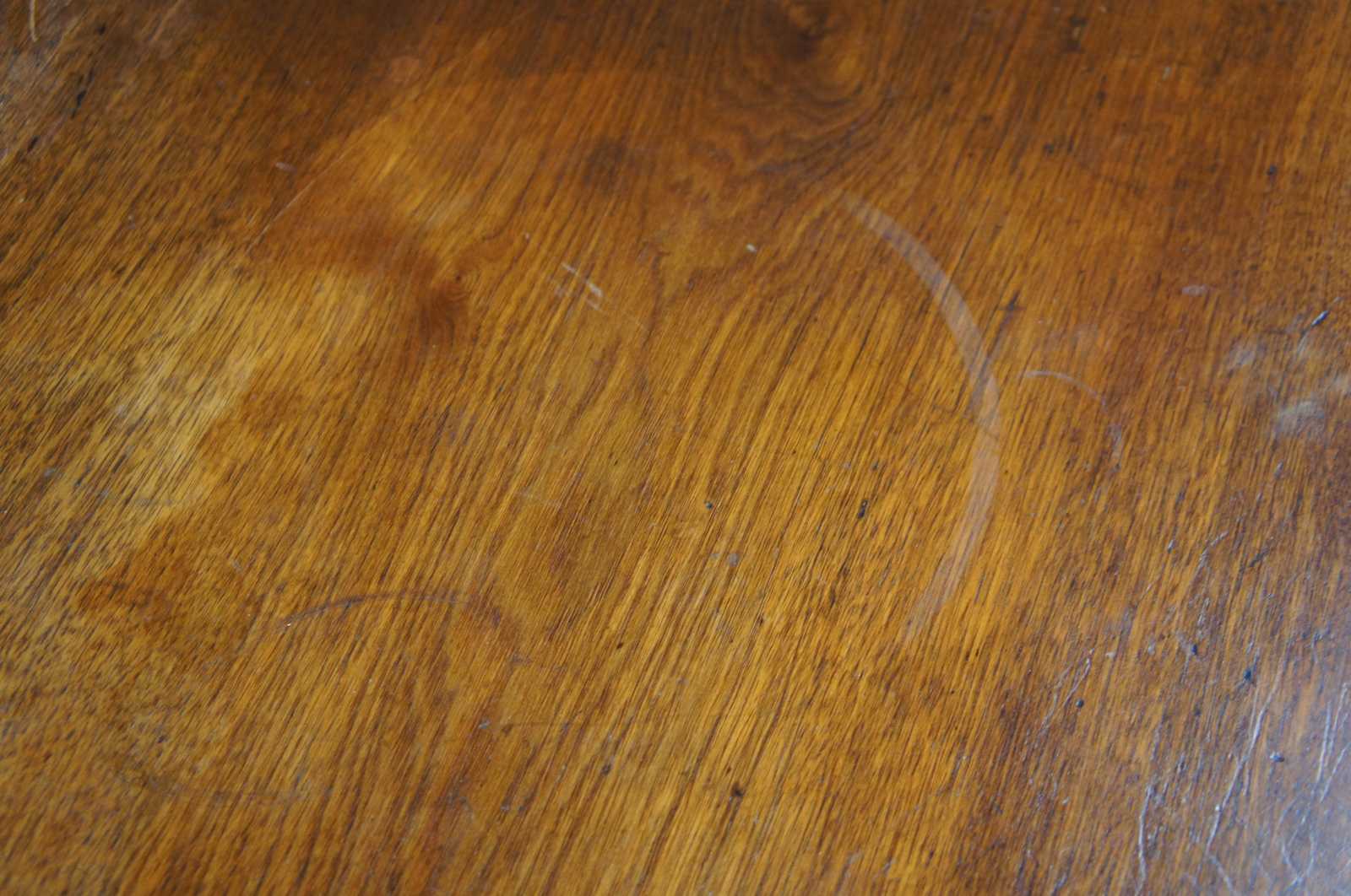 Good overall condition, wear, distressing and staining to surface, some nicks, edge wear, light warping.
