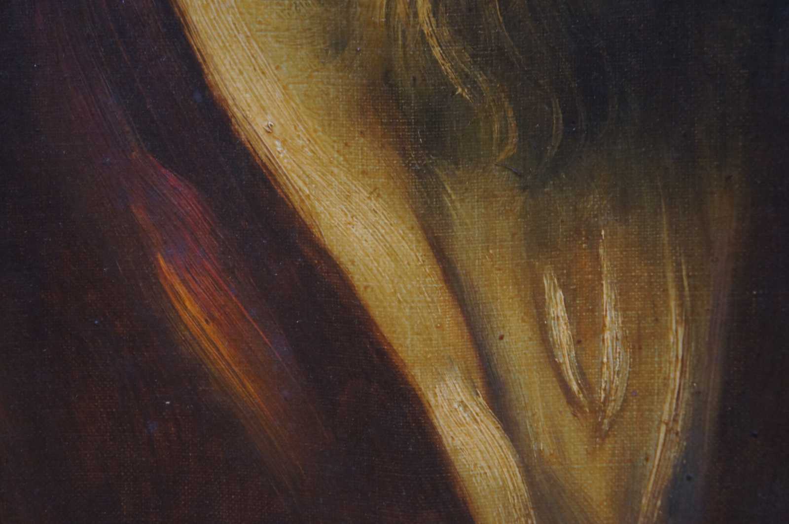 Antique oil on canvas portrait painting of a man with a gray beard wearing Renaissance style clothing; signed in the lower right.