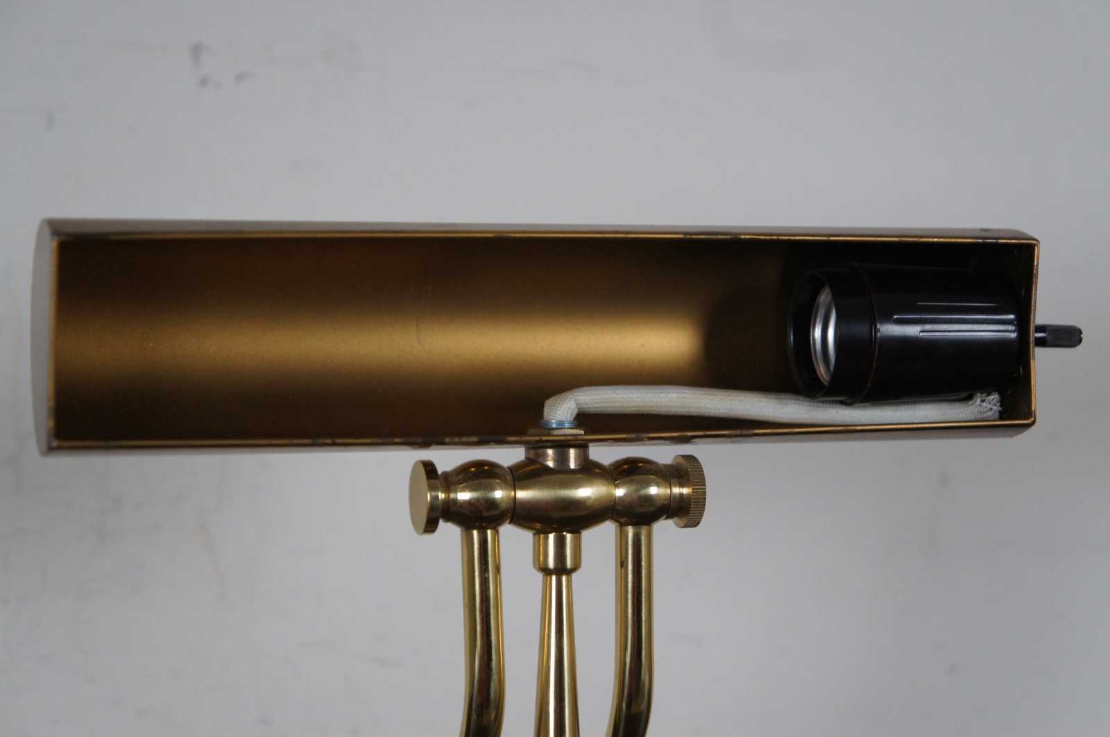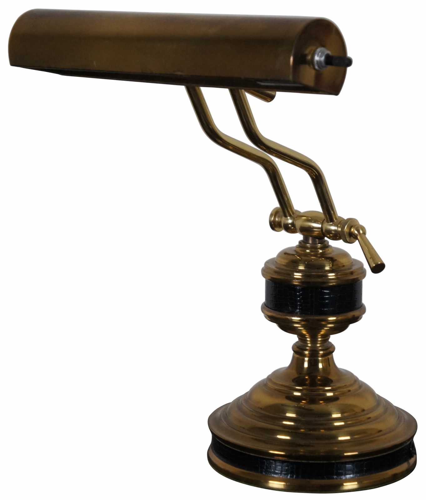 Vintage adjustable angle bankers or piano lamp in brass with black alligatored leather accents.