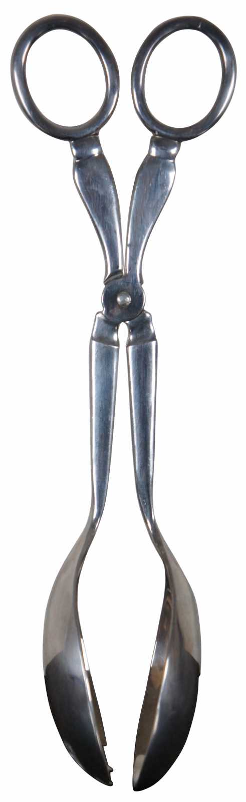 Vintage FB Rogers scissor style silver plate salad tongs and pouch.