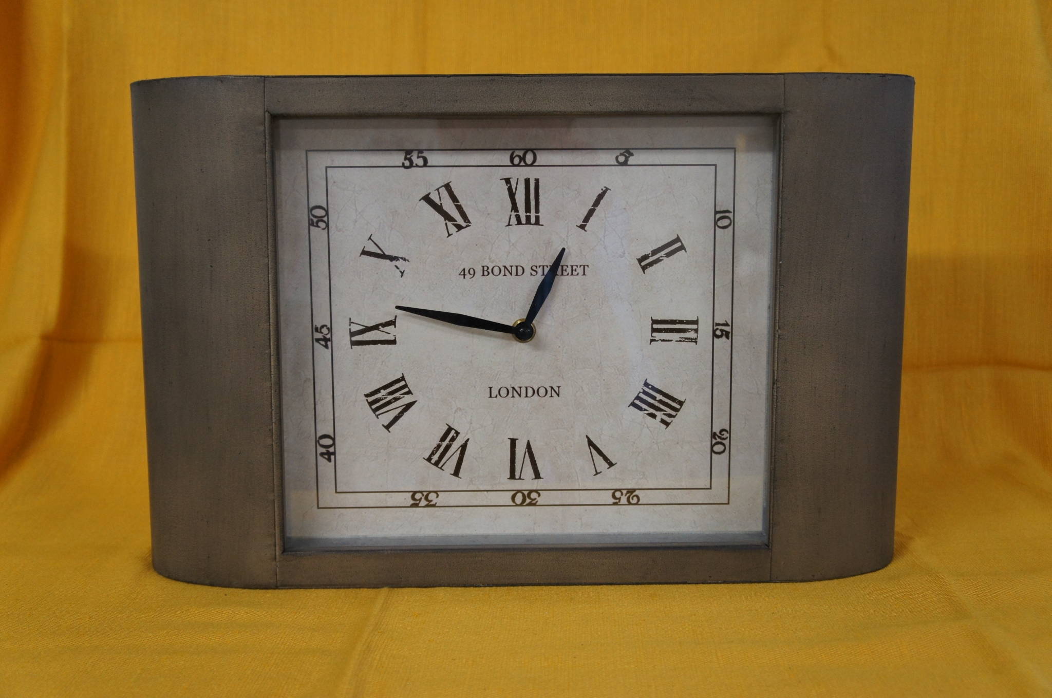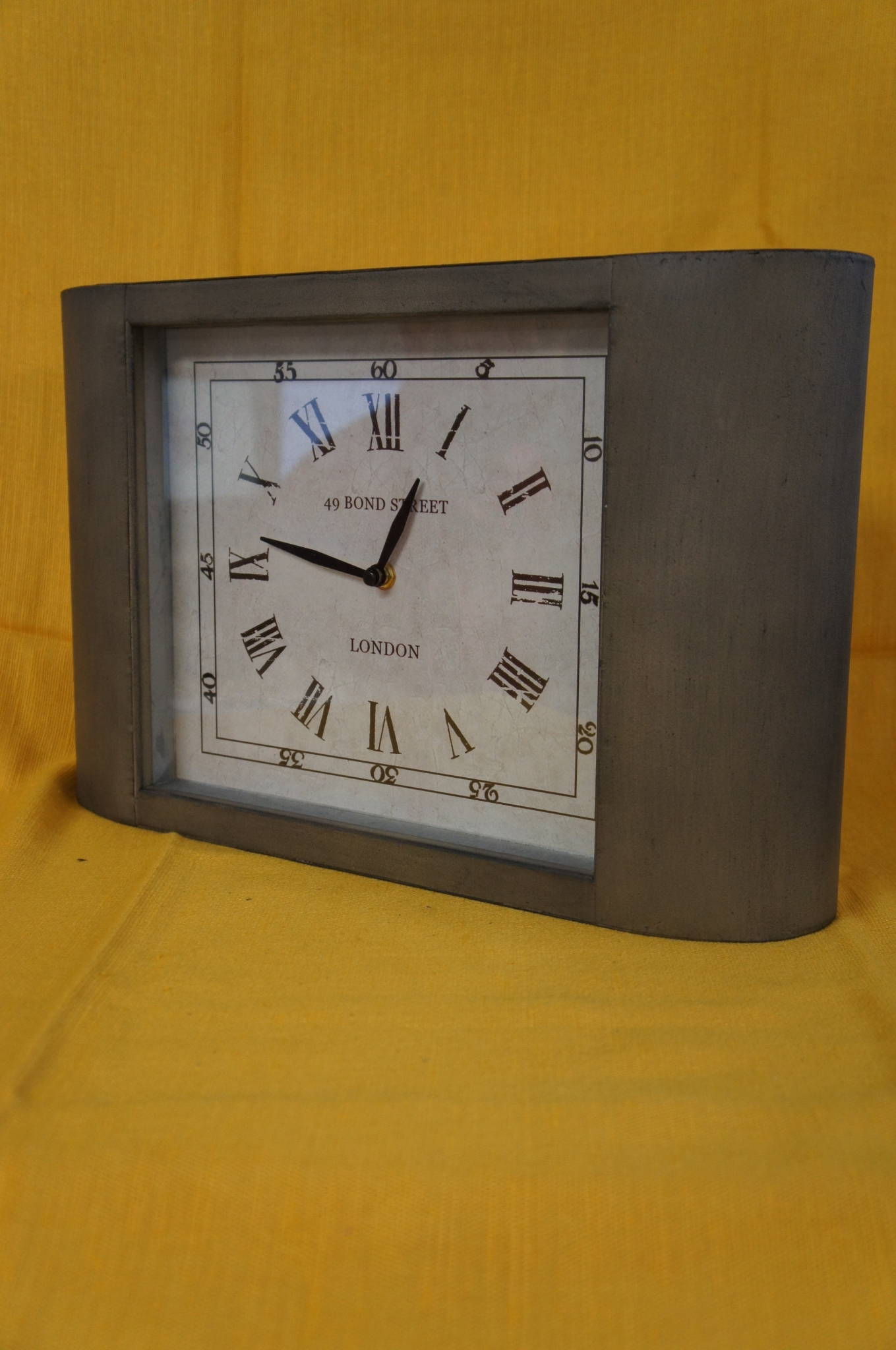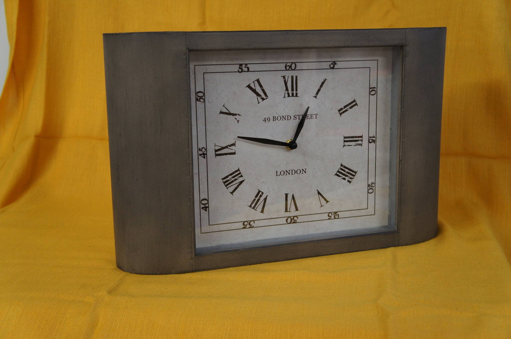 This Art Deco inspired clock will give your home or office a touch of fin de siecle luxury. Handsomely crafted from grey industrial metal, with a watch face reminiscent of classic English timepieces, this clock will make a wonderful addition to your home or office. Hinged at the back for easy access to the clock's workings, this piece can be mounted on your wall, or safely displayed on a table or bookshelf.