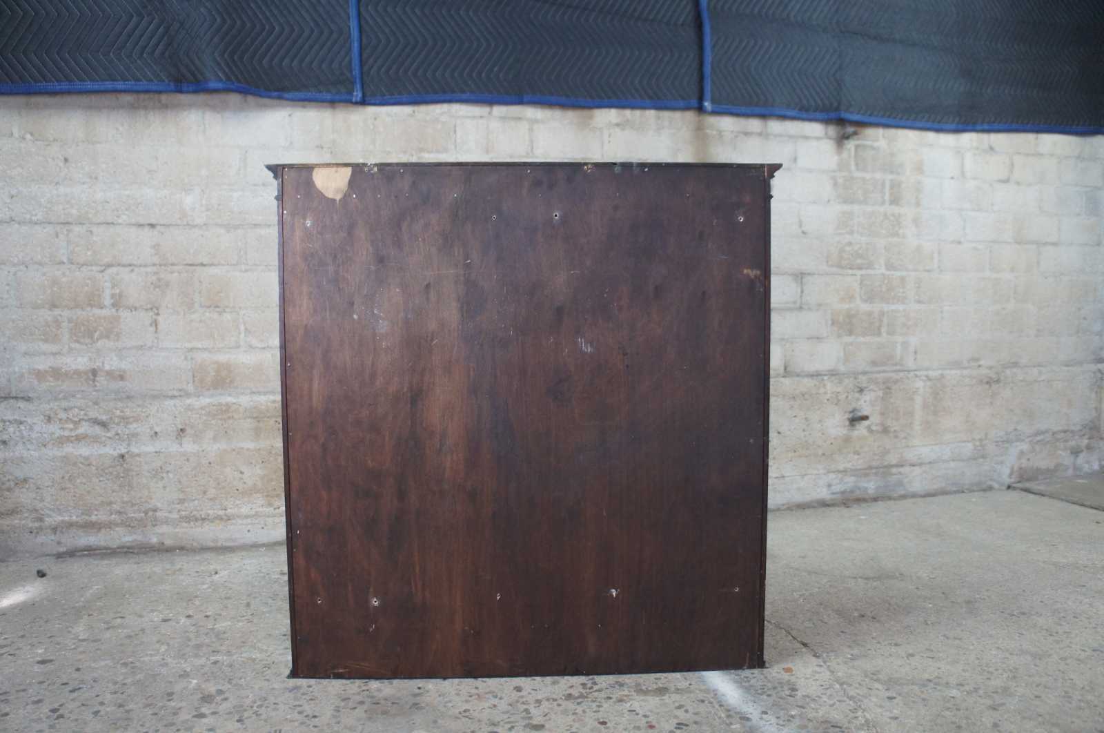 Petite wall curio or display cabinet in the manner of Georgian styling, Circa mid 20th century. Made of mahogany featuring three interior adjustable wood shelves, paned glass doors, and three lower drawers.