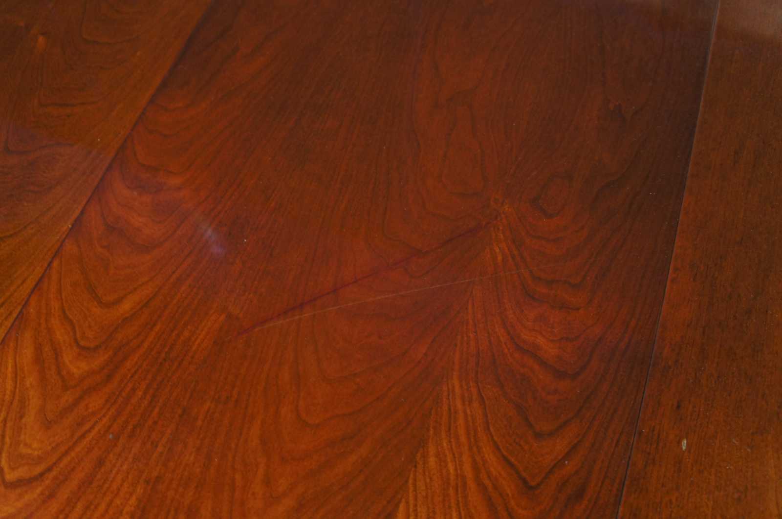 Vintage Stanley Furniture dining table. Made of solid cherry featuring an oval shape with two leaves and slipper feet.