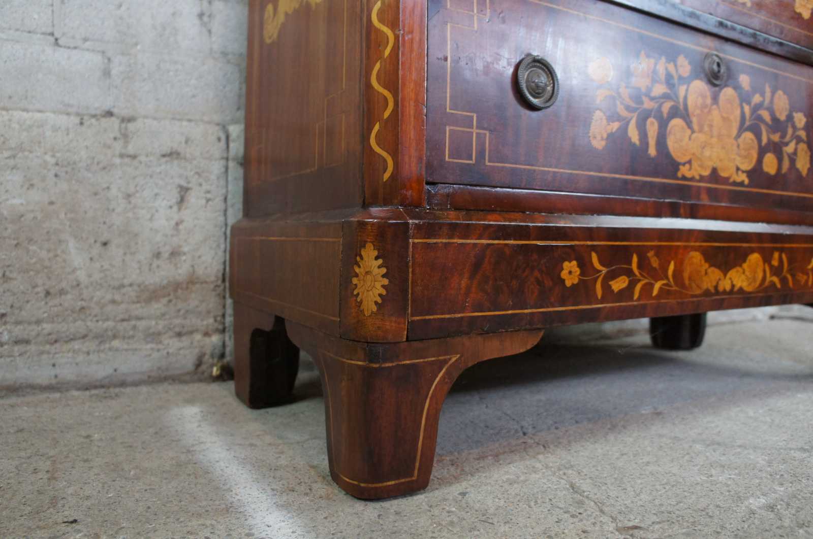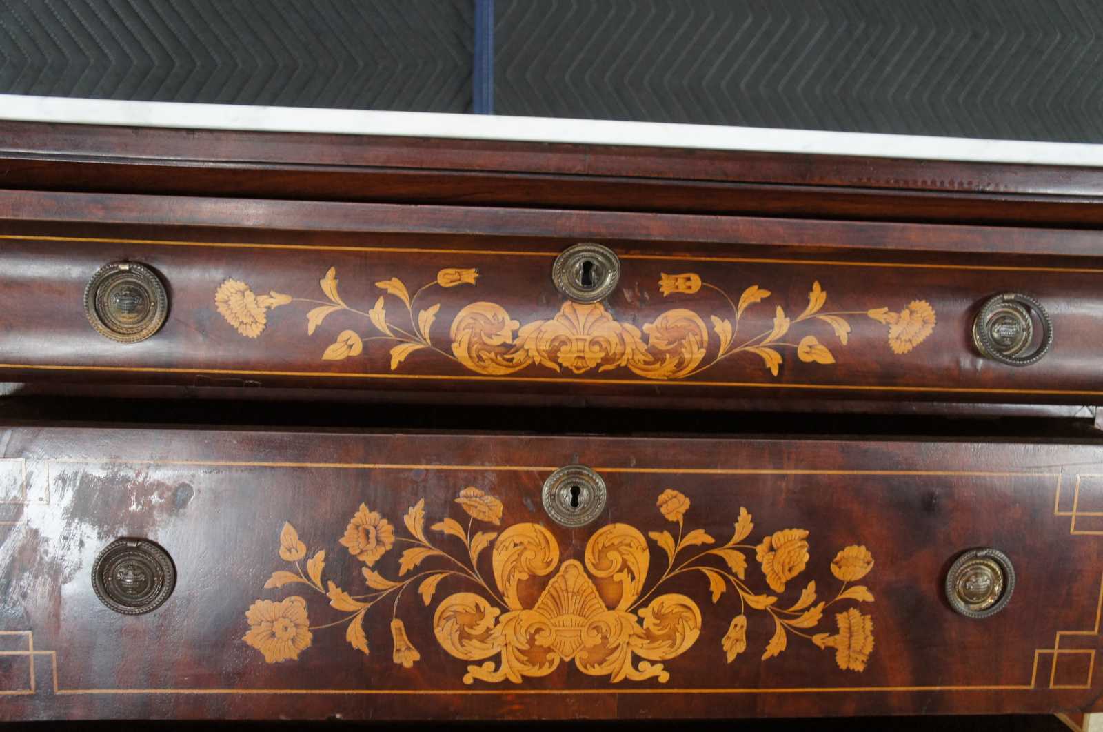 Antique 19th Century Dutch Marquetry Inlaid Tallboy Highboy Dresser Chest Marble