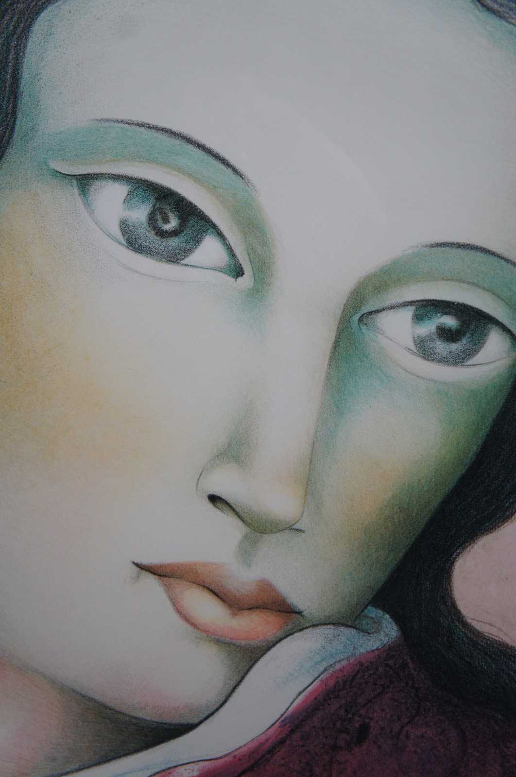 After almost twenty years this series continues, though Miguel says, ""The women have changed as time passed, and I have changed as well. In my travels around the world, the women I have encountered have all found their way into my paintings. Each face I paint, to me, has a different identity. But I feel from the beginning they have all shared a common bond -- their values, their character -- things almost forgotten in our everyday day routines. These women are upright, strong yet gentle, proud of who they are. They have nothing to hide.""