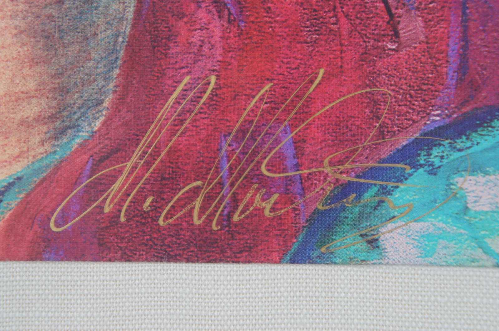 Still in his early twenties, Miguel found a style, which has become his signature. Moved by deep respect and admiration, he began a series of large faces of women, enlarging and stylizing the eyes,and endowed them with mystery of illusive and provocative expressions. He has created them in an ambiance of everyday life, giving them a voice which has inordinately proved to speak to the hearts of a universal following.