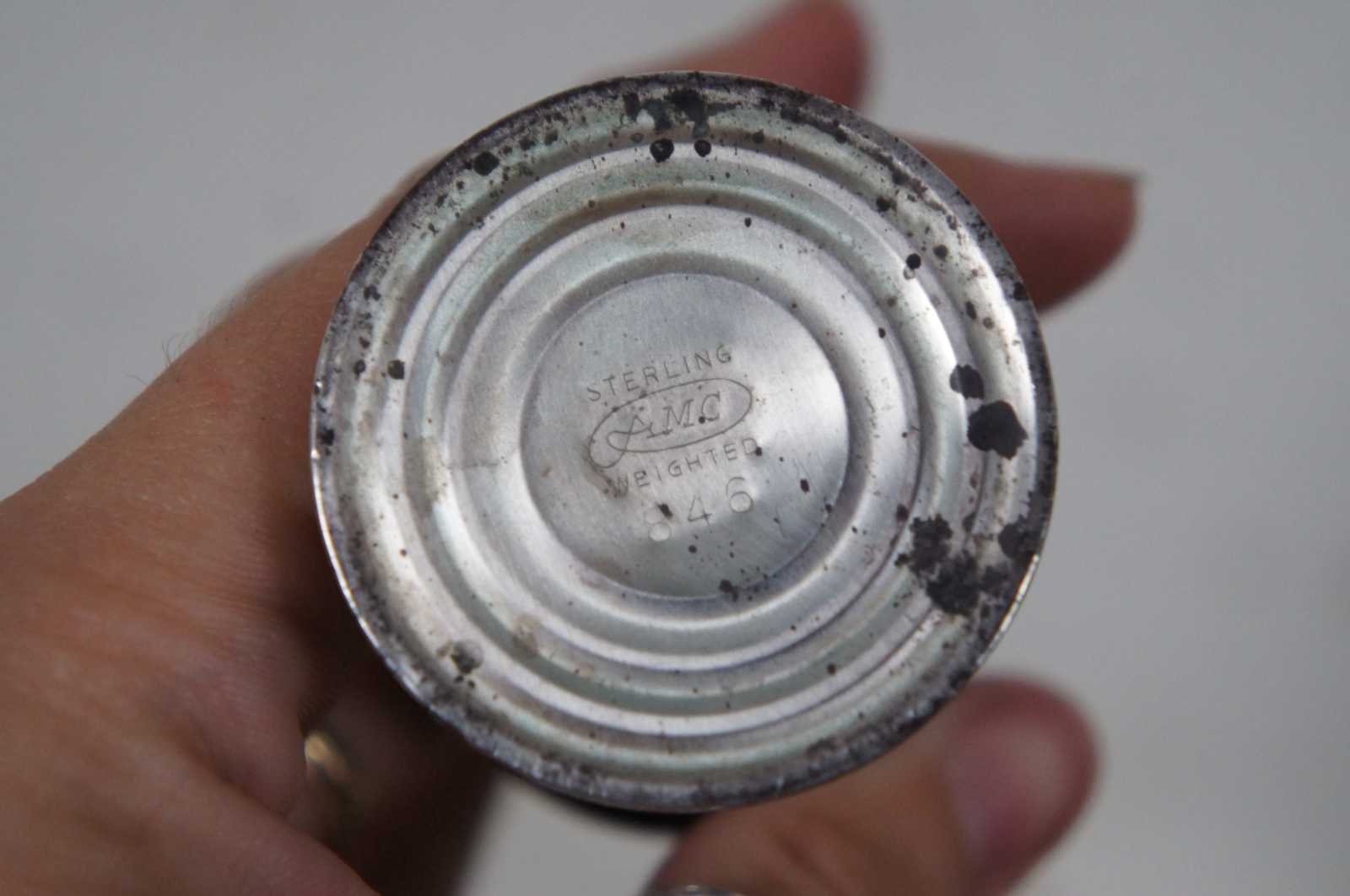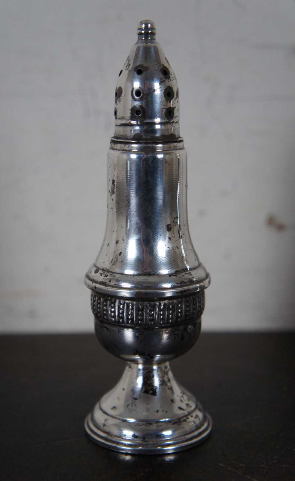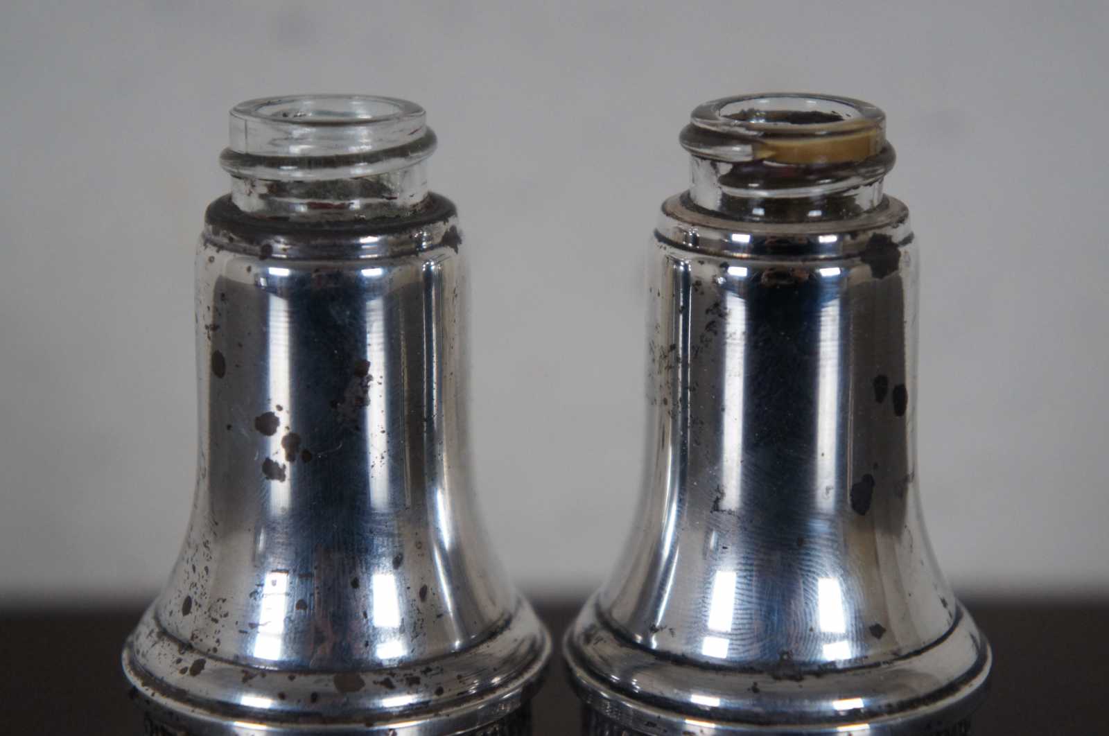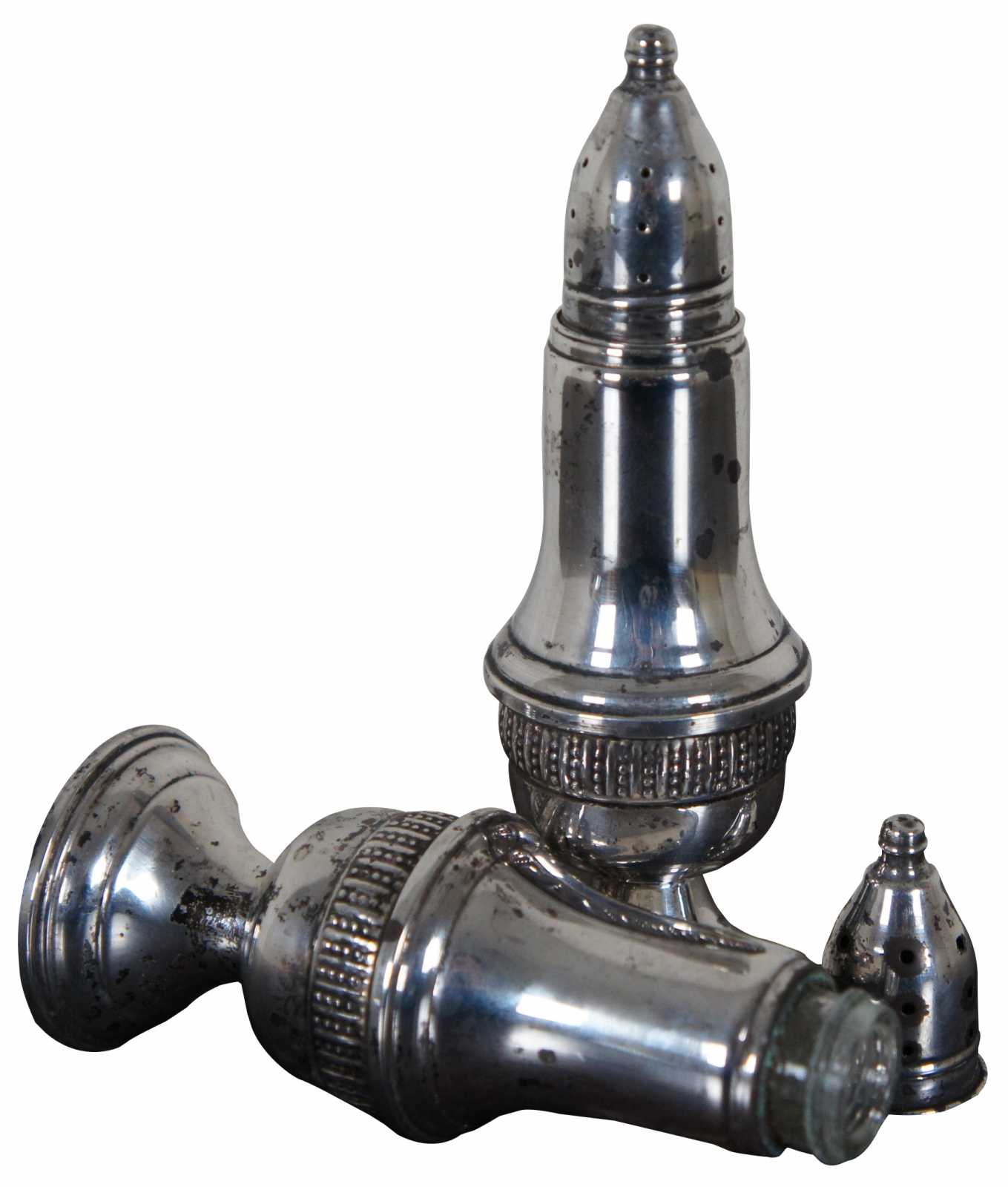 Vintage AMC sterling silver 925 trophy urn shaped weighted salt and pepper shakers with glass interiors.