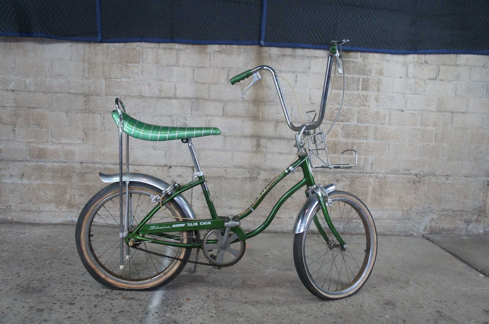 1970s Schwinn Sting Ray Slik Chick 3 Speed Girls Collectible Bicycle. Finished in campus green with banana seat and carrier.
