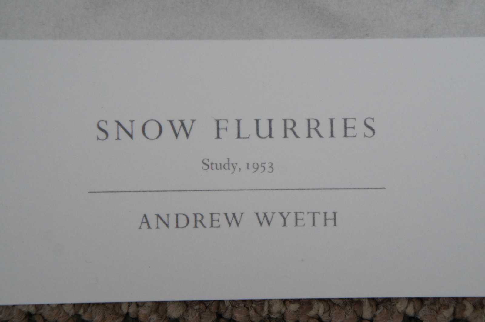 Snow Flurries – Study 1953” by Andrew Wyeth. From a portfolio of 10 facsimile collotype prints of drawings by Andrew Wyeth. Produced by The Metropolitan Museum of Art, 1976. The portfolio is certified and signed by Andrew Wyeth which was produced in a limited edition of three hundred sets. Photocopy of original certification included. This was set 218/300 printed by the craftsmen of the Triton Press New York, July 4th, 1976.