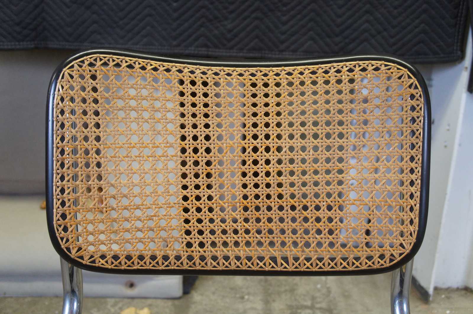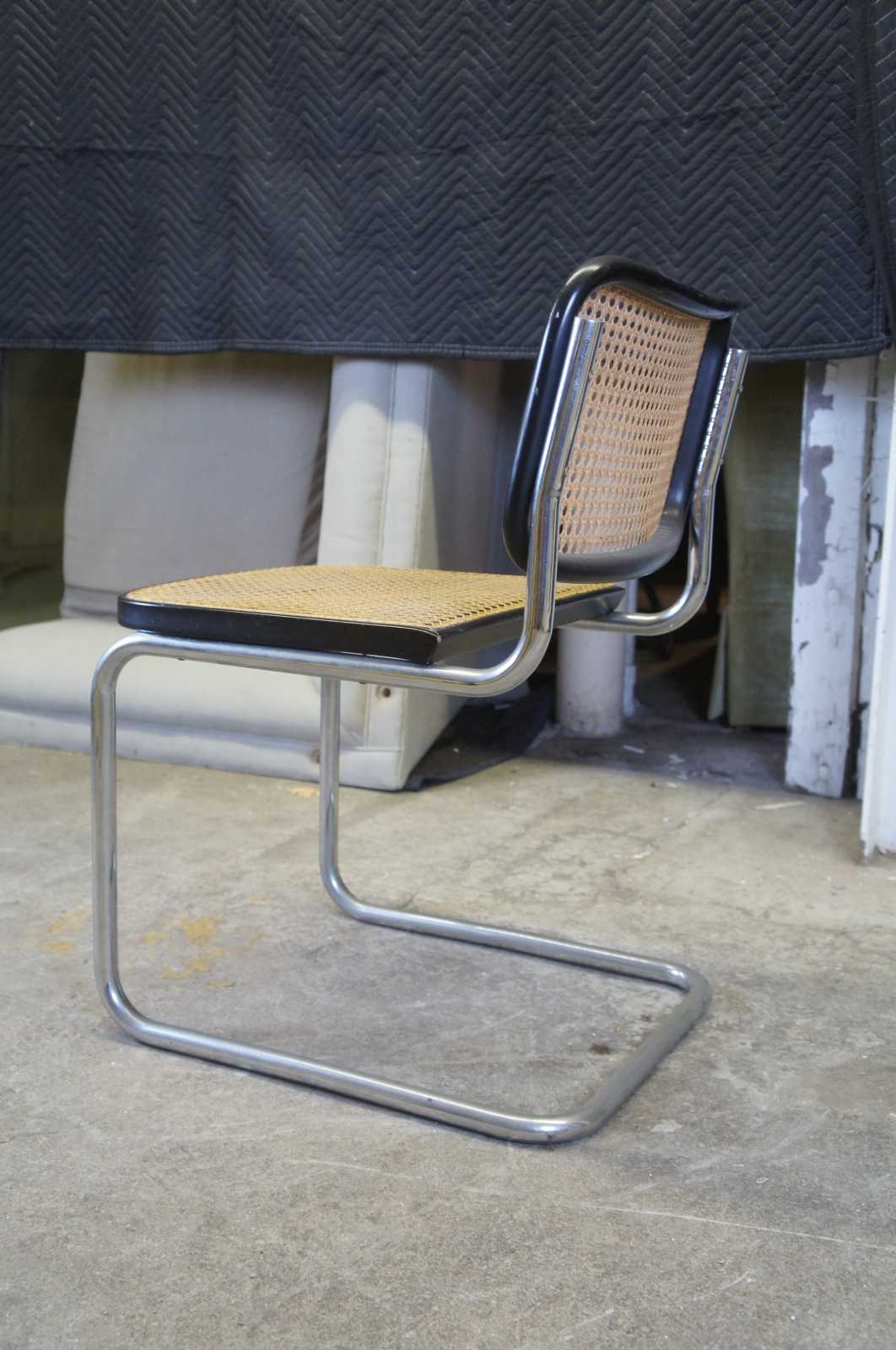 Stendig Breuer Cesca Bauhaus side chair is by Marcel Breuer. The cantilevered stainless steel design is perfect for casual dining spaces. The perfectly balanced stainless steel frame provides sturdy support for the woven rattan seat. A durable ebonized frame surrounds the caned back and seat.