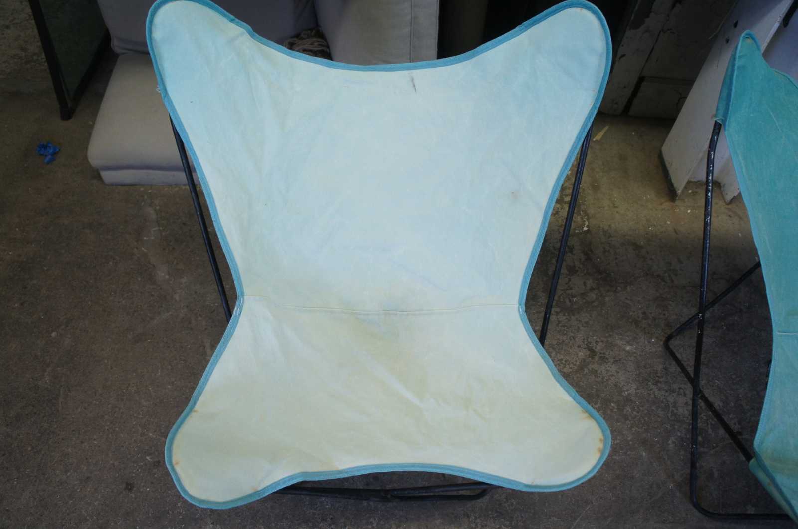 Mid 20th century Iron butterfly chairs attributed to Knoll. Features 2 sets of Algoma seat covers.